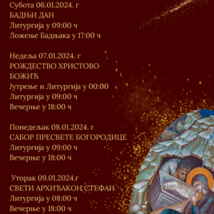 Распоред богослужења о Божићу 2024. године СПЦО Рума