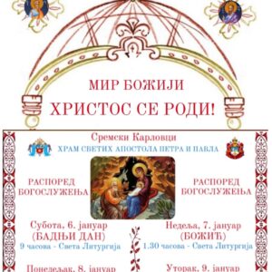 Распоред богослужења о Божићу 2024. године храм Светих апостола Петра и Павла у Сремским Карловцима.