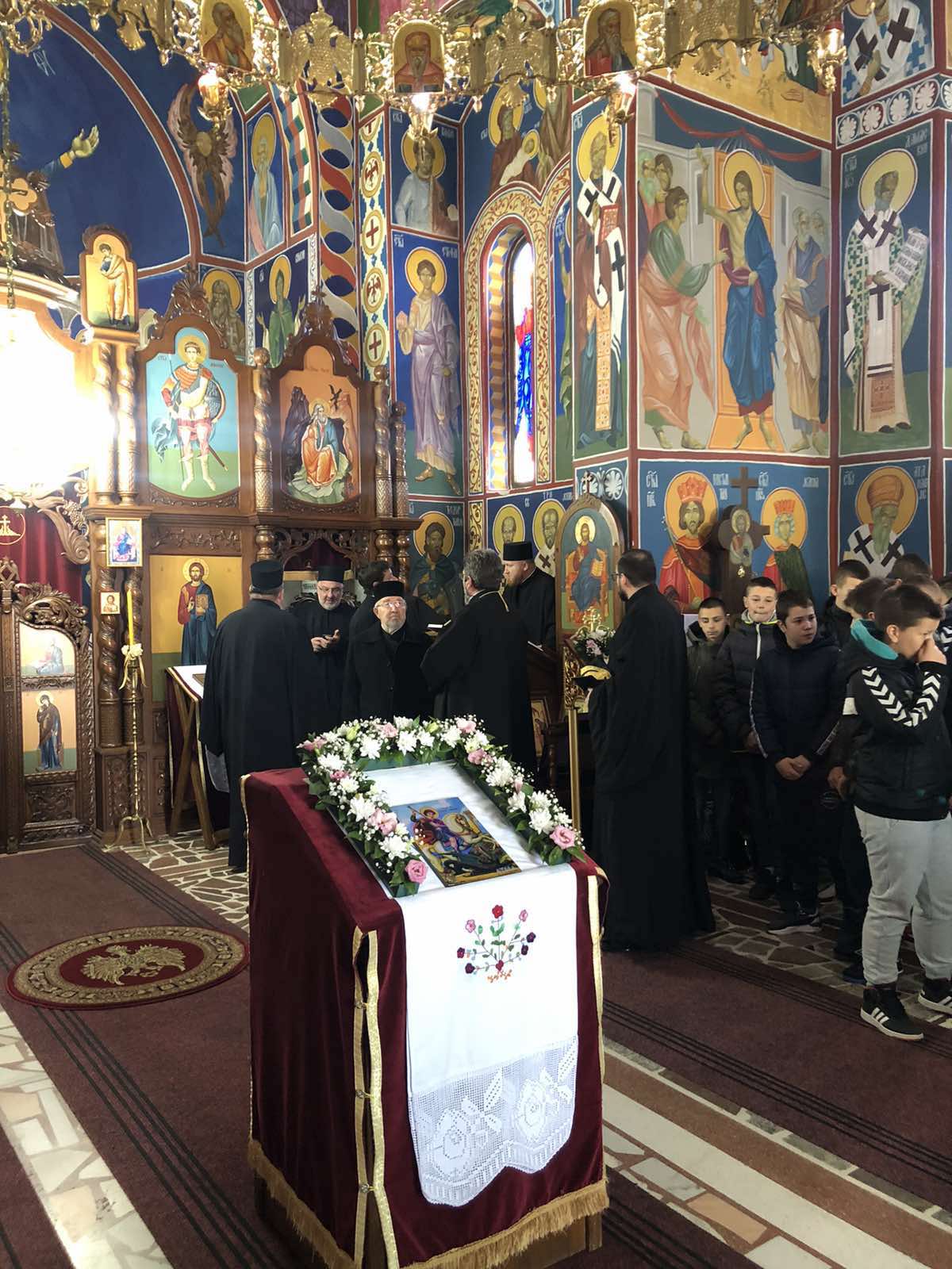Службом Божјом началствовао је Његово Преосвештенство Епископ сремски Господин Василије, уз саслужење протојереја-ставрофора Винка Мишановића, јереја Илије Алексића и епархијског ђакона Горана Власца. Свештенство Архијерејског намесништва румског, на челу са архијерејским намесником, протојерејом-ставрофором Сретеном М. Лазаревићем, приступило је Светој тајни исповести, коју је извршио протојереј-ставрофор Михајло Марјанац. По отпусту је беседио Преосвећени Владика Василије.