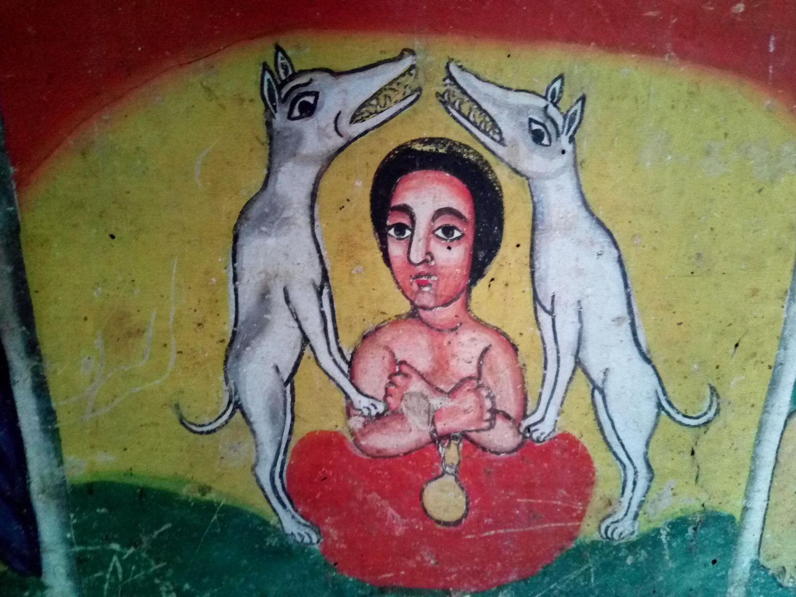 Ипак, слично српским народним обичајима у исхрани, главни празнични оброк и у Етиопији представља печење. У зору Велике суботе убија се овца, која ће служити као оброк вернима, исцрпљеним дугим црквеним службама и литургијама. Ова овца асоцира на старозаветно испитивање Аврамове вере, од кога је Господ Бог тражио да на жртву принесе свог сина Исака. Када је покорни праотац Аврам пристао да на олтару убије свог сина, Бог му је послао јагње, поштедевши га првобитно захтеване, најстрашније и најболније жртве, што се и у нашој Светој Цркви тумачи као симбол и пророчанство Христовог распећа, кога је жртвовао управо Његов Свемоћни Отац, због безусловне љубави према својој палој творевини.