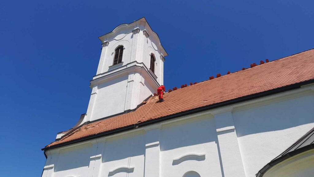 САНАЦИЈА КРОВИШТА ЦРКВЕ СТРАДАЛЕ У НЕВРЕМЕНУ У ИЛОКУ Читав регион Западног Балкана доживљава ових дана забрињавајуће ударе орканских ветрова, па је тако за последице ових природних катастрофа у Илоку на санацији тамошњег православног храма Светог архангела Михаила учествовала и Хрватска горска служба спасавања (ХГСС). Црква и парохијски дом, су тешко оштећени од невремена које је захватило Републику Хрватску 19. и 21. јула и одбацило на стотине црепова, који су покривали и штитили ове верске објекте. У сарадњи с градским властима омогућено је да се за овакве радове на великим висинама ангажује ХГСС, а протојереј-ставрофор Предраг Азап се захвалио интервентној јединици на помоћи око санације крова, и најавио да ће у наредном периоду бити потребно анагажовати грађевинску фирму и кровопокриваче, који ће квалитетно да финализују радове на кровишту овог светог храма.