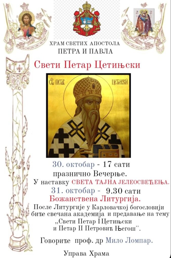 Празник Светог Петра Цетињског у карловачкој Доњој цркви