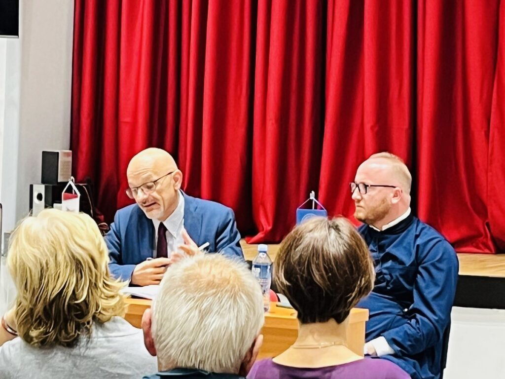ПРЕДАВАЊЕ У ГРАДСКОЈ БИБЛИОТЕЦИ У РУМИ У понедељак, 6. новембра 2023.године, у Градској библиотеци „Атанасије Стојковић“ у Руми, одржано је предавање на тему „Изазови породице данас“. Предавачи су били проф. др Зоран Павловић, шеф кривично-правне катедре на Правном факултету за привреду и правосуђе Универзитета Привредна Академија у Новом Саду и мср Ђорђе Санчанин, православни свештеник храма Вазнесења Господњег у Руми и докторант треће године Правног факултета за привреду и правосуђе. Том приликом, сала Градске библиотеке је била испуњена до последњег места, а све присутне речима добродошлице је, најпре, поздравио Дамир Васиљевић Тоскић, директор Градске библиотеке у Руми. Сабрање је отворио свештеник Ђорђе, говорећи о значају и очувању светиње брака, породице и породичних вредности. Професор др Зоран Павловић је, у свом излагању, ставио акценат на потребу пружања подршке својим ближњима, као и на чињеницу да „све креће од породице и да се све враћа ка породици, да је породица основ свега“. Овом приликом се захваљујемо директору Градске библиотеке „Атанасије Стојковић“, господину Дамиру Васиљевићу и свима у управи поменуте институције, који су нам указали част и поверење да о овако битној теми причамо на месту где се многи људи сабирају. Велико хвала свима који су били присутни и својим присуством увеличали сабрање. Надамо се да ће наше сабрање, ако ништа друго, барем у малој мери, дати допринос очувању брака, породице и породичних вредности . Свештеник Ђорђе Санчанин