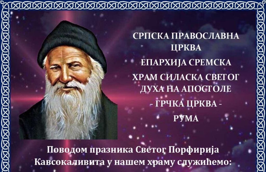 Српска Православна Епархија сремска и храм Силаска Духа на апостоле, позива верни народ на свеноћно бденије, поводом празника Светог Порфирија Кавсокаливита.