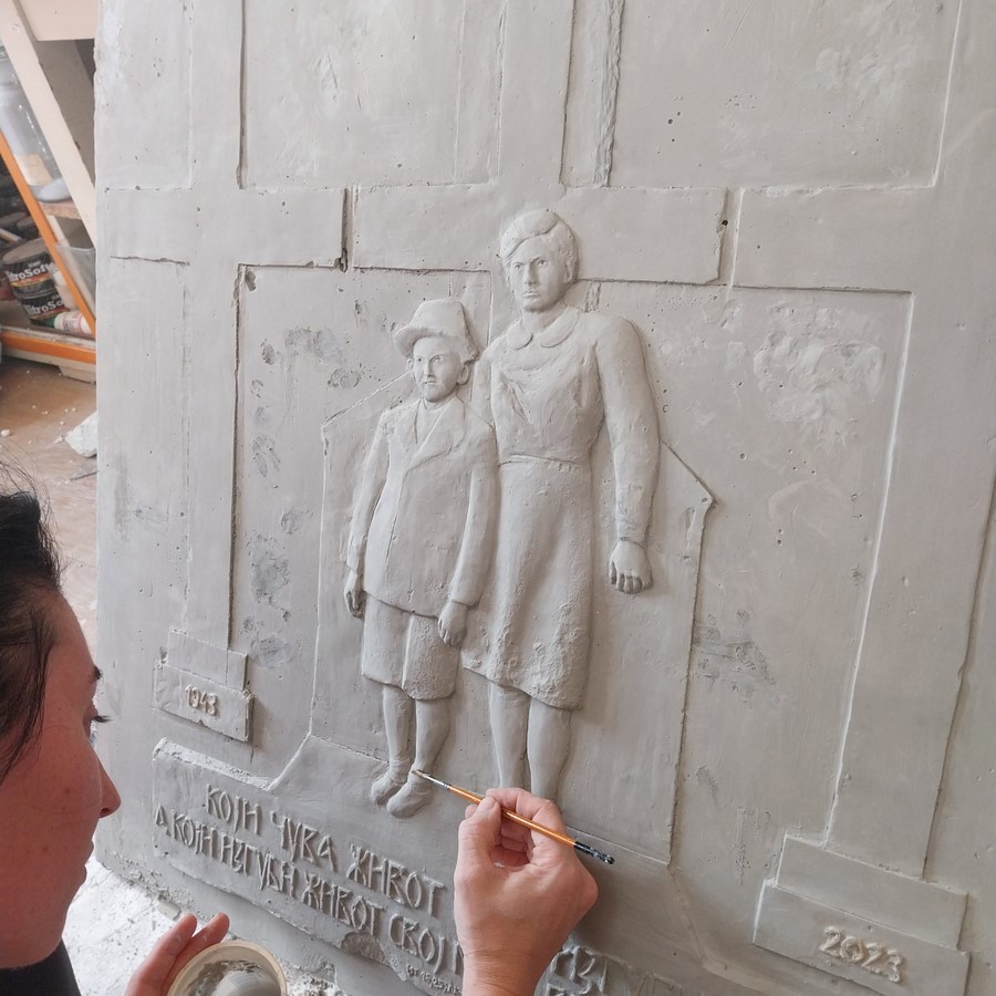 По парастосу, Владика сремски је освештао спомен-плочу, рад академске вајарке Ружице Шпановић, која је постављена на спољашњи зид храма, са десне стране, крај улаза. На плочи су представљени Стеван и Ђурђица Лаушевић, брат и сестра, двоје од 22 пописане деце убијене у лежимирској цркви пре 80 година. Иза њих представљена су три крста који симболизују мајку са двоје деце, односно Христа са два разбојника на Голготи, док се иза њих уздиже лежимирска светиња која представља не само место страдања, већ и сусрета са Небеским Оцем. Средства за израду спомен-плоче сакупљена су добровољним прилозима.