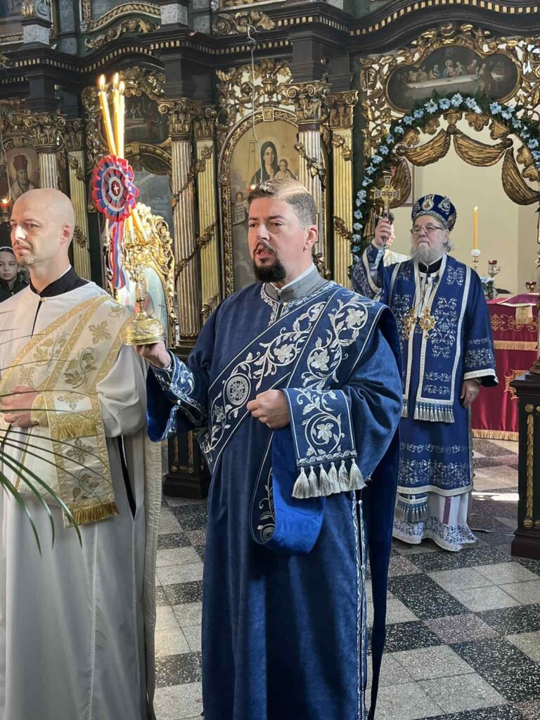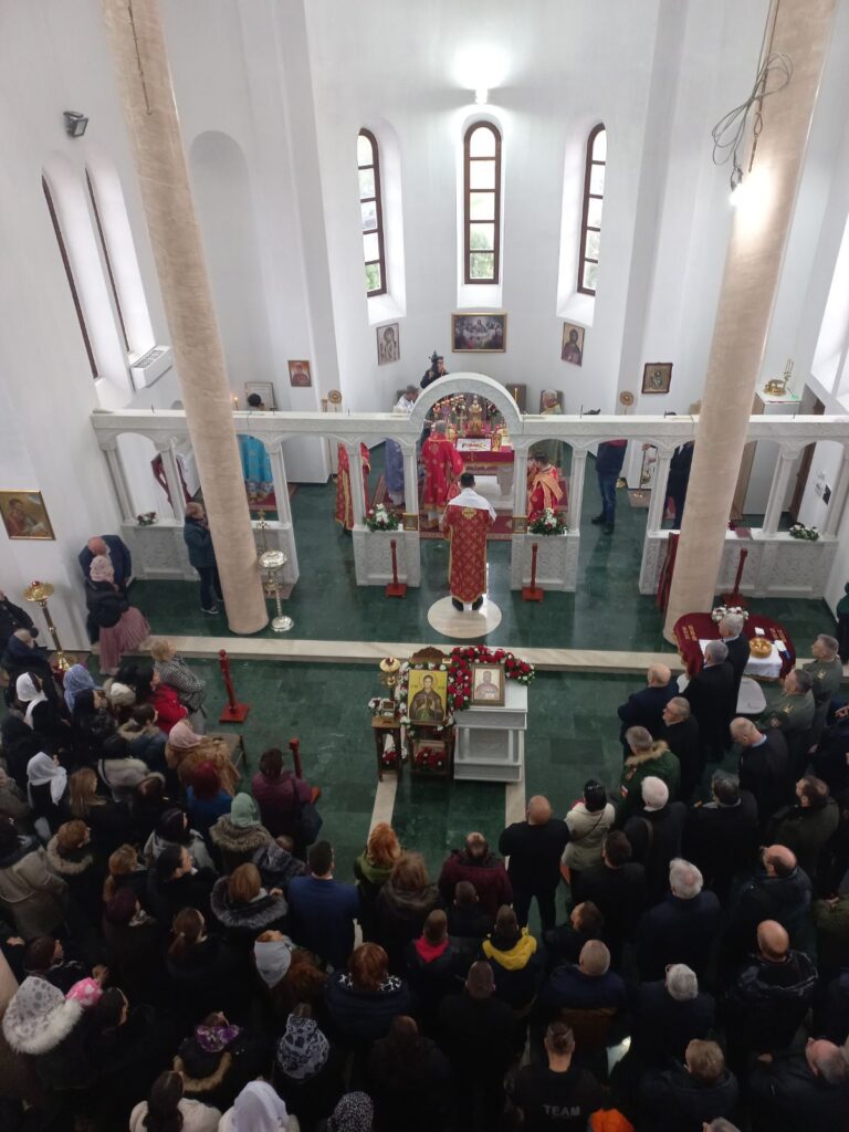 СВЕТА АРХИЈЕРЕЈСКА ЛИТУРГИЈА У ХРАМУ СВЕТОГ ВЕЛИКОМУЧЕНИКА КНЕЗА ЛАЗАРА У ШИДУ У недељу, 3. децембра 2023. године Господње, на претпразништво Ваведења Пресвете Богородице и празник Светог Григорија Декаполита, у храму Светог великомученика кнеза Лазара у Шиду служена је Света архијерејска Литургија. Литургију је служио Његово Преосвештенство Епископ сремски Господин Василије, уз саслужење протојерејâ-ставрофора: Радомира С. Мишића, архијерејског намесника шидског, Ђорђа Воларевића, умировљеног архијерејског намесника шидског, Зорана Симића, умировљеног пароха белобрдског (из Епархије осјечкопољске), протонамесника Саве Симића и епархијског ђакона Горана Власца. Храм Светог великомученика кнеза Лазара на дар је добио изображен лик Евгенија (Родионова), руског војника који је због непоколебљиве вере у Христа Господа мученички пострадао од руку чеченских сепаратиста, 1996. године. Ова слика је дар Амбасаде Руске Федерације у Републици Србији, а за њен долазак у храм Светог великомученика Лазара велика заслуга припада старешини, протојереју-ставрофору Ђорђу З. Марићу, као и пријатељима ове светиње, потпуковнику Слађану Гашићу и Удружењу ,,Српски витезови“ из Шида. Светој архијерејској Литургији, поред многобројног верног народа који је дошао из свих крајева наше земље, али и из Републике Српске, присуствовали су припадници Војске Србије, бројнe личности из јавног живота, као и помоћник војног аташеа Амбасаде Руске Федерације, пуковник Јевгениј Пољаков и госпођа Олга Литвина, представница Удружења ратних војних ветерана Руске Федерације ,,Бојево братство“. По завршетку Свете архијерејске Литургије, верном народу се богонадахнутом беседом обратио Преосвећени Владика Василије, поучивши све присутне о животу новомученика руског, војника Евгенија, као и о величини и значају љубави према Господу и своме роду и отечеству. Након богослужбеног дела за све присутне је уприличена трпеза љубави, трудом старешине цркве Лазарице, протојереја-ставрофора Ђорђа З. Марића. Током сабрања за трпезом прота Ђорђе је уручио пригодне поклоне Преосвећеном Владици и окупљеном свештенству, даровавши свог Епископа панагијом, а браћу свештенике служебницима.