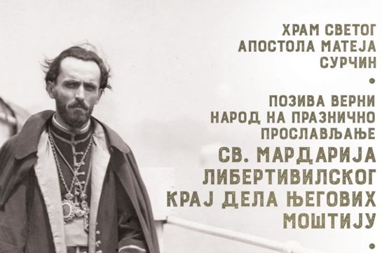 Храм Светог апостола Матеја у Сурчину, позива верни народ на празнично прослављање Светог Мардарија Либертивилског. У понедељак 11. децембра у 17 часова – празнично бденије, у уторак 12. децембра у 9 часова – Света литургија.