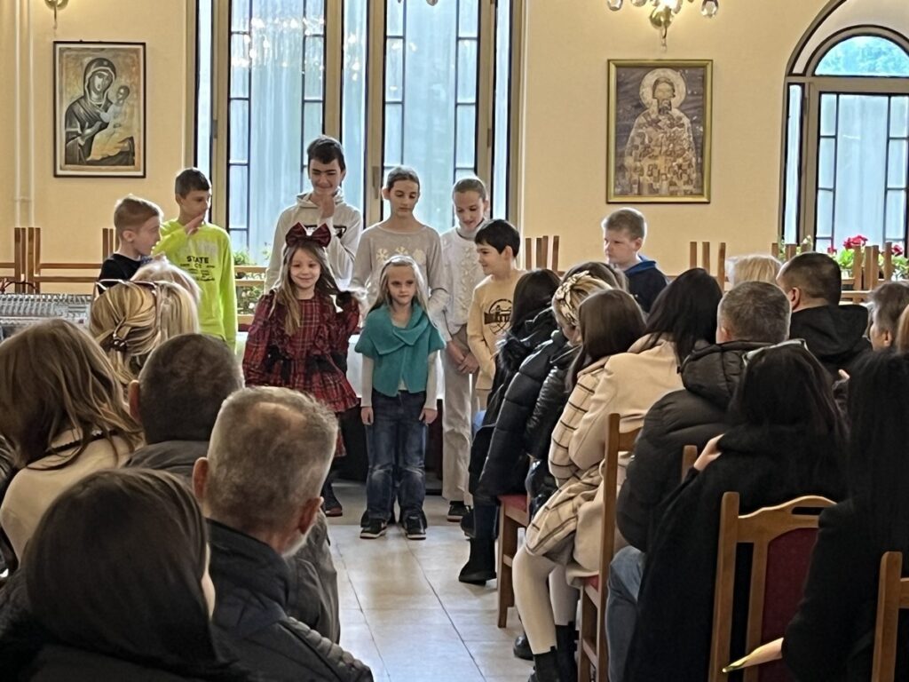 МАТЕРИЦЕ У БАТАЈНИЦИ У Недељу Светих Праотаца и на спомен Светог преподобног Данила Столпника, 24/11. децембра 2023. лета Господњег, верни народ се сабрао на Литургију и након сједињења са Живим Богом обележио традиционални празник Материце пригодним програмом, у црквеној сали храма Светог архангела Гаврила у Батајници. У сали препуној родитеља и деце, старешина овог храма, протонамесник Радоје Вукотић се свима обратио уводним словом о смислу Материца за српску православну породицу, посебно нагласивши значај мајке по угледу на многе славне праматере и матере нашег рода. Том приликом представио је још један повод овог окупљања, а то је промоција нове књиге и богоугодне збирке песама парохијанке, госпође Душице Риђошић, желећи да нам будућност донесе још њених духоносних и плодотворних радова. У наставку, уследио је мозаик разних рецитала и глумачких комада ученика православне веронауке ОШ „Бошко Палковљевић Пинки“, у част мајки, уједно сећајући се Детињаца и најављујући обичаје за Оце. Међу учесницима програма чуо се и славопој у част Пресвете Богородице, а извео ју је новоформирани црквени певачки састав при овом храму, под учитељским вођством јереја Милована Дерете. При крају свечаности о стваралаштву, о књизи „Дарови од Бога“ говорила је госпођа Наталија Станковић, мастер италијанског језика и књижевности, а потом се присутним обратила и сама песникиња, речима захвалности Богу и окупљеној публици, дочаравајући љубав Божју, молитвену моћ и лепоту православних хришћанских празника и обичаја. Нека су од Бога благословени дани Божићног поста, чекајући сверадосни празник Рођења Христовог! јереј Немања Теофиловић, парох батајнички при Храму Светог архангела Гаврила