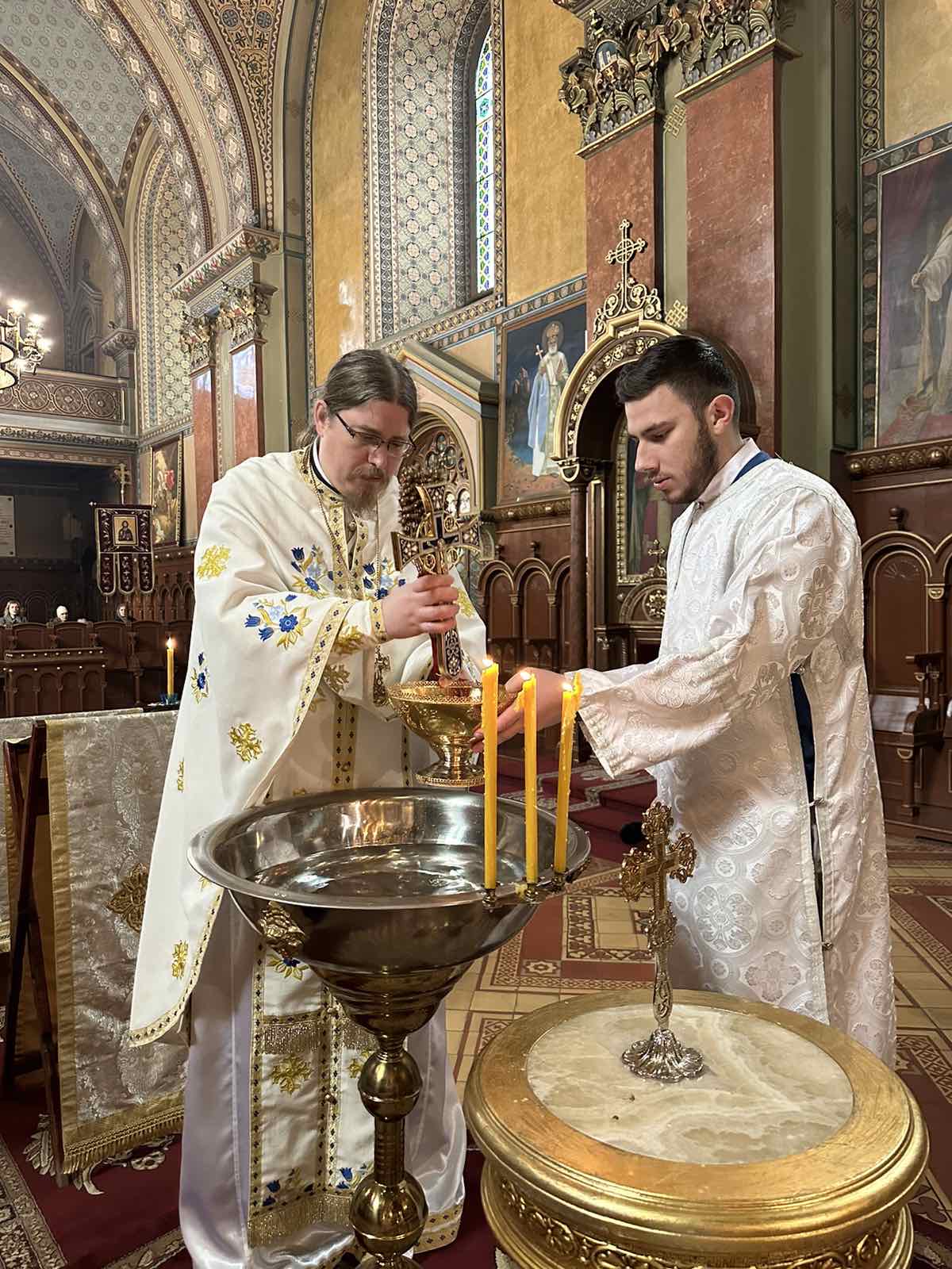 У Саборном храму Светог оца Николаја у Сремским Карловцима, 18. јануара 2024. године, када наша Света Црква прославља Крстовдан, служени су Царски часови уочи празника Богојављења и Литургија Светог Василија Великог, која почиње са великим вечерњим. Свету Литургију су служили протојереј-ставрофор мр Јован Милановић, ректор Карловачке богословије и епархијски протођакон Горан Власац, секретар Црквеног суда Епархије сремске. Свечана богослужења обављена су у молитвеном присуству Његовог Преосвештенства Епископа сремског Господина Василија. По завршетку Евхаристијског славља, извршено је и велико водоосвећење.