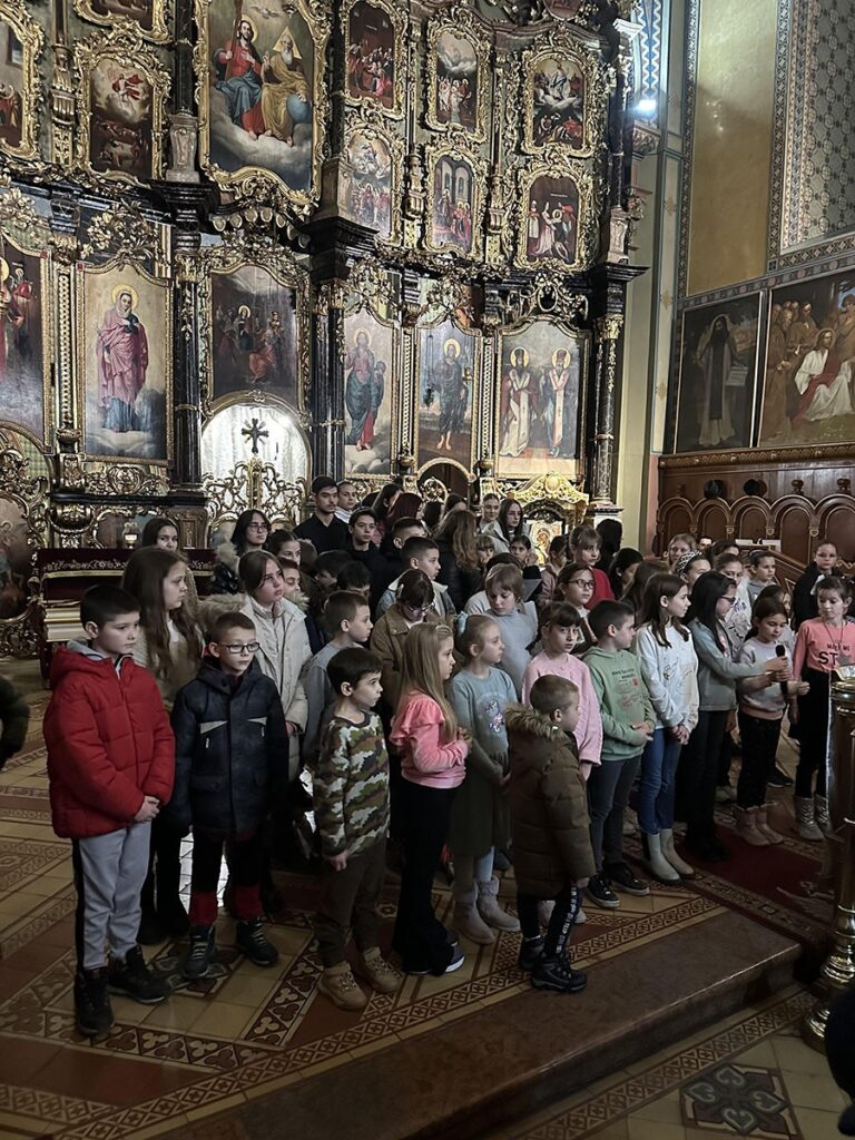 ВЕЧЕРЊА СЛУЖБА УОЧИ ПРАЗНИКА СВЕТОГ САВЕ У СРЕМСКИМ КАРЛОВЦИМА У навечерје празника Светог Саве првог Архиепископа српског, 26. јануара 2024. године, у Саборном храму Светог оца Николаја у Сремским Карловцима служено је вечерње са петохлебницом. Вечерњу су служили јереј Станко Лакетић, професор Карловачке богословије и старешина Катедралног храма Епархије сремске и епархијски протођакон Горан Власац, секретар Црквеног суде ове дијецезе. Након богослужења, ученици Основне школе „23. октобар“ у Сремским Карловцима уприличили су пригодан програм, уочи празника када се молитвено прославља први српски просветитељ и архипастир, Свети Сава. Овој лепој свечаности и претходној служби Божијој, молитвено је присуствовао Његово Преосвештенство Епископ сремски Господин Василије, који је потом поделио светосавске пакетиће окупљеној деци.