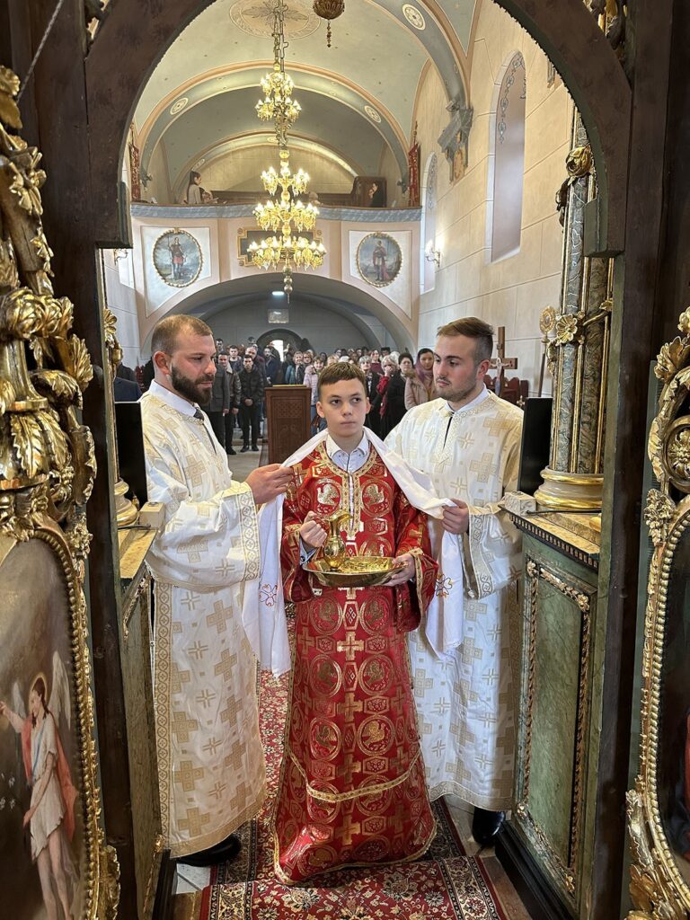 Света архијерејска Литругија у Доњој цркви у Сремским Карловцима На 34. недељу по Духовима, када наша света Црква прославља Преподобне Павла Тивејског, Јована Колибара и Гаврила Лесновског, 28. јануара 2024. године, Његово Преосвештенство Епископ сремски Господин Василије служио је Свету архијерејску Литургију у храму Светих апостола Петра и Павла у Сремским Карловцима. Саслуживали су протојереј-ставрофор Зоран Јовић, архијерејски намесник старопазовачки, протојереј Слободан Вујасиновић, архијерејски намесник сремскокарловачки, протојереј-ставрофор Чедомир Грујић, умировљени парох из Епархије банатске, јереј Бојан Нинковић, секретар Епархијског управног одбора Епархије сремске, јереј др Петар Николић, катихета у Карловачкој гимназији, јереј Ђорђе Милидраг, професор у Карловачкој богословији, епархијски протођакон Горан Власац и ђакон Марко Стефановић из Сремских Карловаца. Непосредно пре Свете Литургије, Његово Преосвештенство је осветио обновљени иконостас у храму Светих апостола Петра и Павла. Резбарија неокласицистичког иконостаса из Доње цркве представља рад Марка Вујатовића из 1825. године. Слике у олтару настале су после 1720. године и дело су непознатог мајстора. Фреске на своду, пандантифима и иконе на иконостасу сликао је Димитрије Братоглић, у периоду од 1828 до 1831. године. У току Евхаристијског славља, на малом входу, Преосвећени Владика Василије одликовао је протојерејским чином Петра Николића, доктора теологије и вероучитеља у Карловачкој гимназији, а у својој архипастирској беседи изразио је своју особиту радост што Карловчани поново имају прилике да иконостас Доње цркве виде у његовој блиставој лепоти, пре свега захваљујући труду и ревности старешине овог храма, протојереја Слободана Вујасиновића, архијерејског намесника сремскокарловачког.