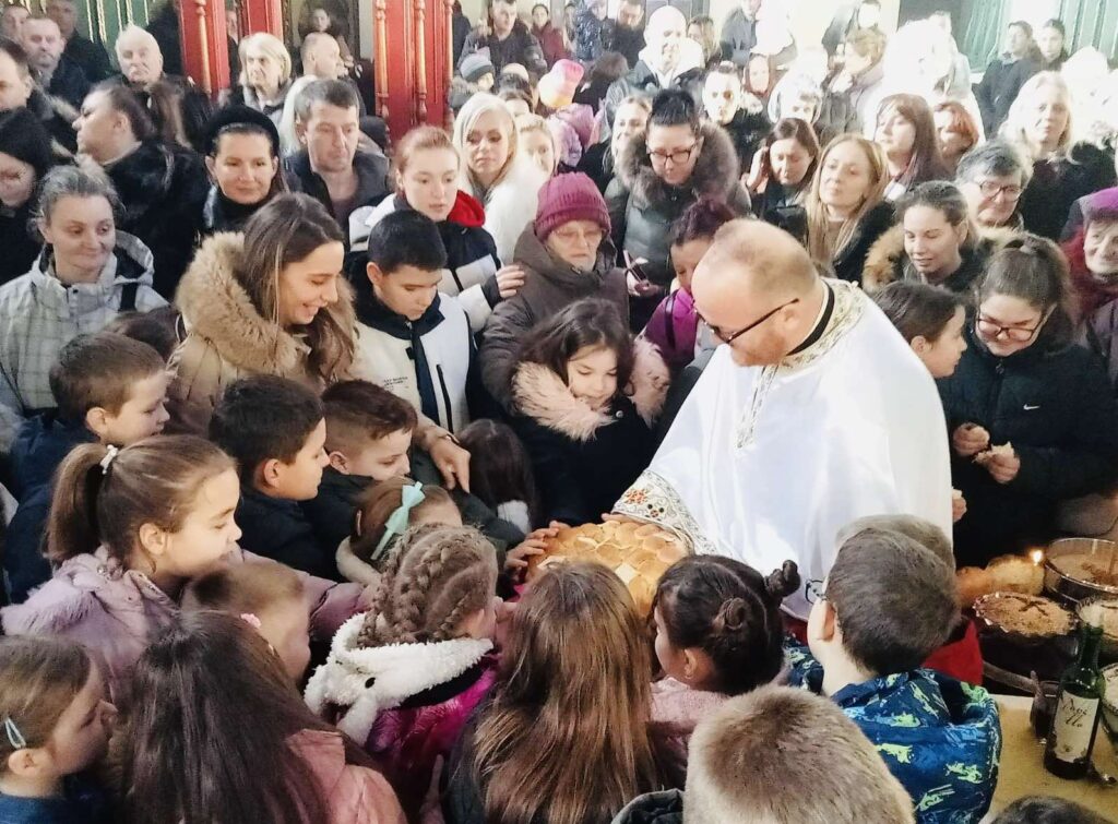 САВИНДАН У РУМИ У суботу, 27. јануара, на Савиндан, у храму Вазнесења Господњег у Руми служена је Света Литургија, којом је началствовао јереј Ђорђе Санчанин, уз молитвено присуство протојереја Драгана Арсеновића. Након молитвено уздигнуте благодарности Богу што је сабрао велики број верних у овај свети храм, отац Ђорђе се присутнима обратио пригодном беседом, подсећајући их на значај окупљања у циљу заједничке молитве. У наставку се отац Ђорђе захвалио свим овогодишњим кумовима, који су принели жртве у част и спомен Светога Саве, те позвао и остале да се прихвате кумства за следећу годину. Како за кумство једине услове представљају љубав и добра воља, на свештеников позив одазвала се Анастасија Санчанин. Потом је уследио пригодан „Светосавски програм“, у ком је учешће узео велики број малишана и школараца различитих узраста. Колаж песама и рецитација посвећених Светом Сави изведен је у сарадњи вероучитељице Биљане Гудовић, деце која похађају веронауку и оца Ђорђа. Том приликом свештеник Ђорђе је, захваљујући светосавским кумовима и људима добре воље, својим најмлађим парохијанима поделио стотину пакетића, спремљених за ову прилику.