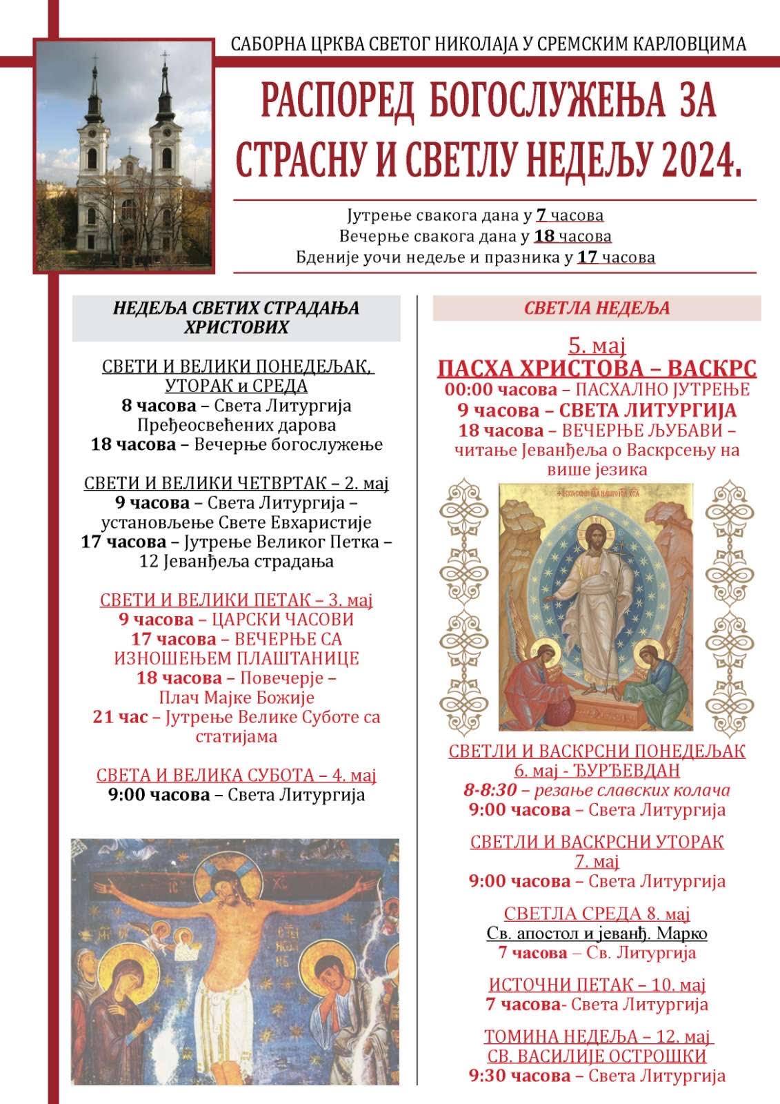 Распоред богослужења за Страсну и Светлу недељу 2024. године у Саборном храму Светог оца Николаја у Сремским Карловцима.