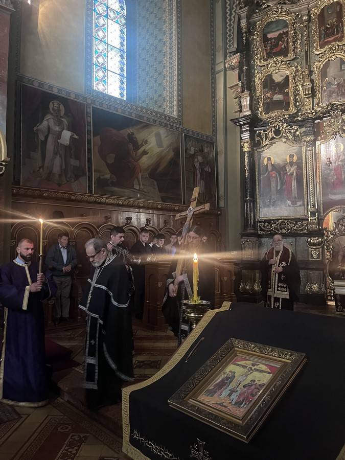 На Велики четвртак, 2.маја 2024. године, у Саборном храму Светог оца Николаја у Сремским Карловцима, служено је јутрење Великог петка са читањем дванаест страдалних Јеванђеља. Јутарњем богослужењу Великог петка началствовао је Његово Преосвештенство Епископ сремски Господин Василије, уз саслужење протојереја–ставрофора мр Јована Милановића, ректора Богословије Светог Арсенија, протојереја–ставрофора Бранислава Поповића, умировљеног архијерејског намесника, јереја Станка Лакетића, настојатеља Саборног храма у Сремским Карловцима, јереја Бојана Нинковића, секретара Епархијског управног одбора Епархије сремске и епархијског протођакона Горана Власца, секретара Црквеног суда.