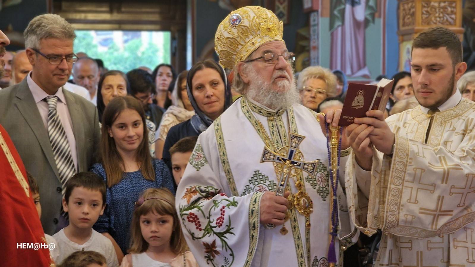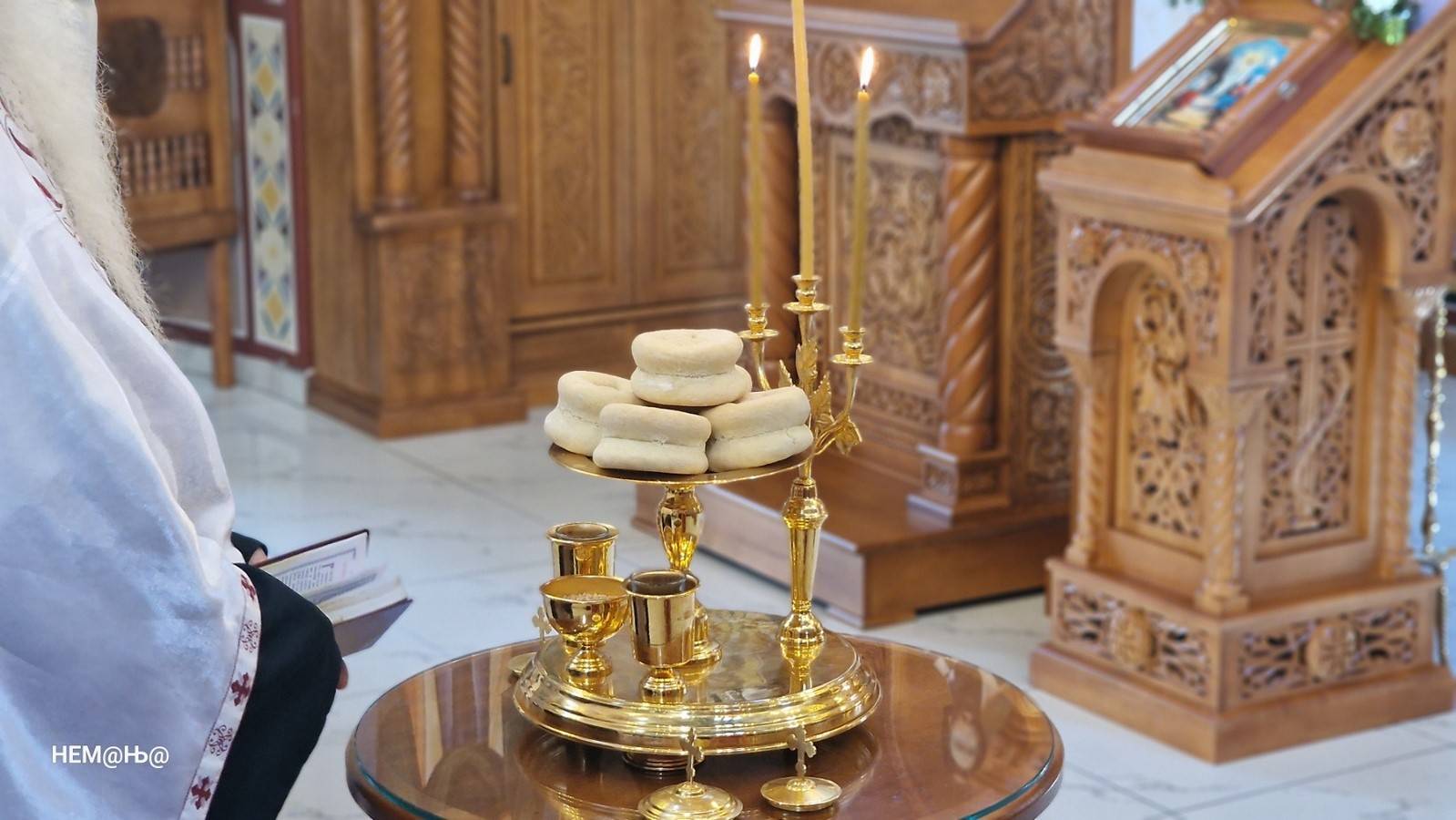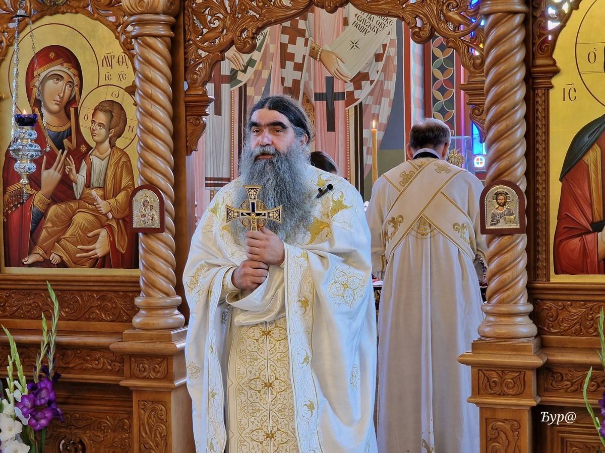 Након Свете тајне Причешћа, Преосвећени Господин Епископ је пререзао славски колач са кумовима храма, породицом Марковић.  По завршеној Светој Литургији, уприличена је и трпеза љубави за све окупљене у храму.