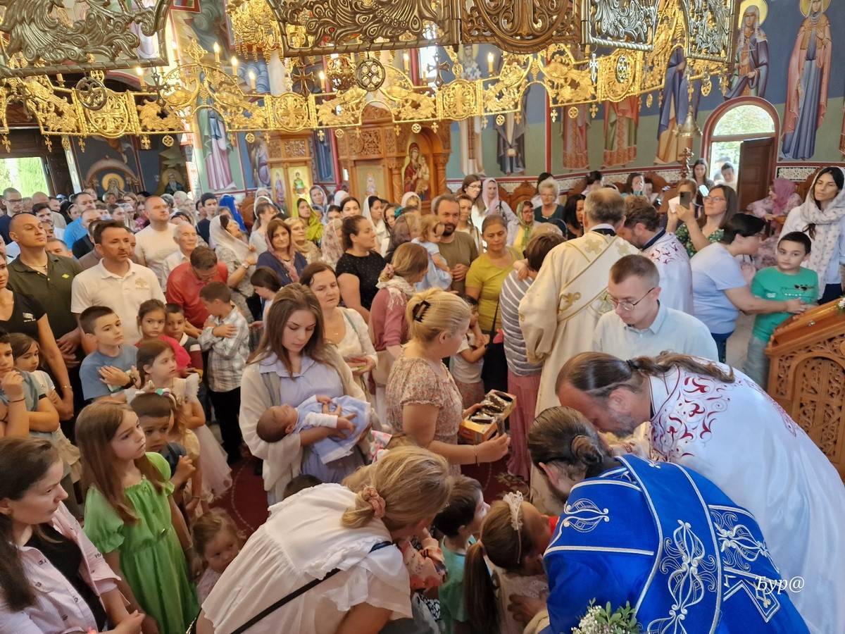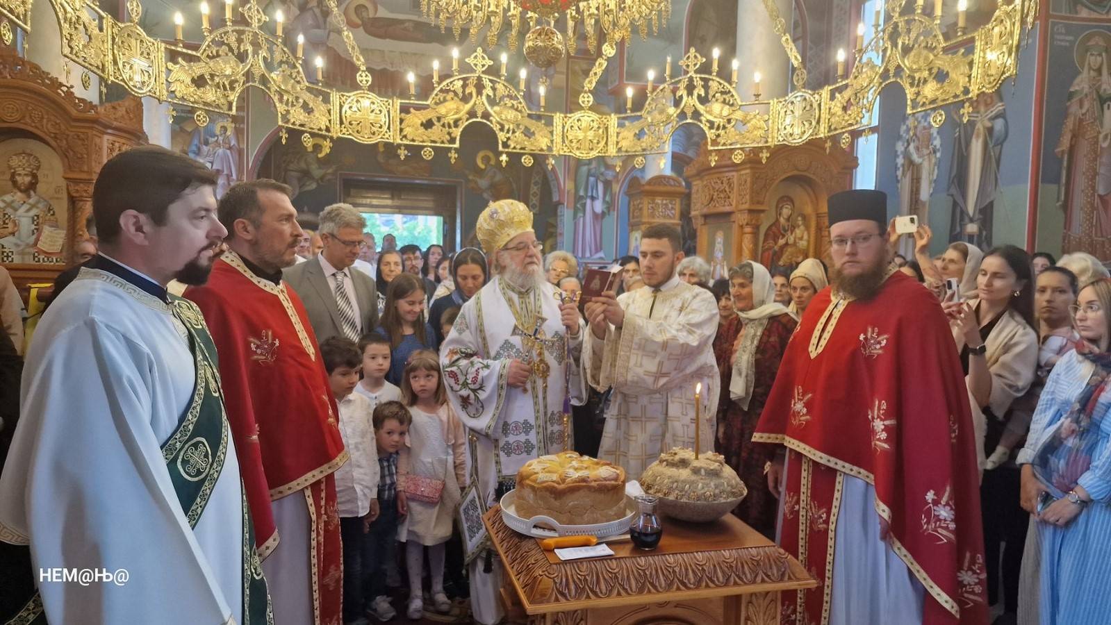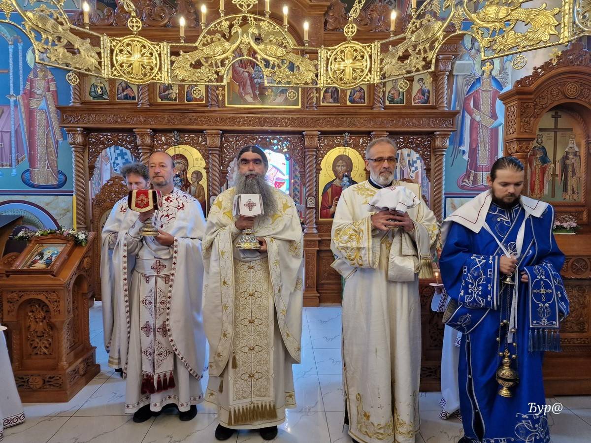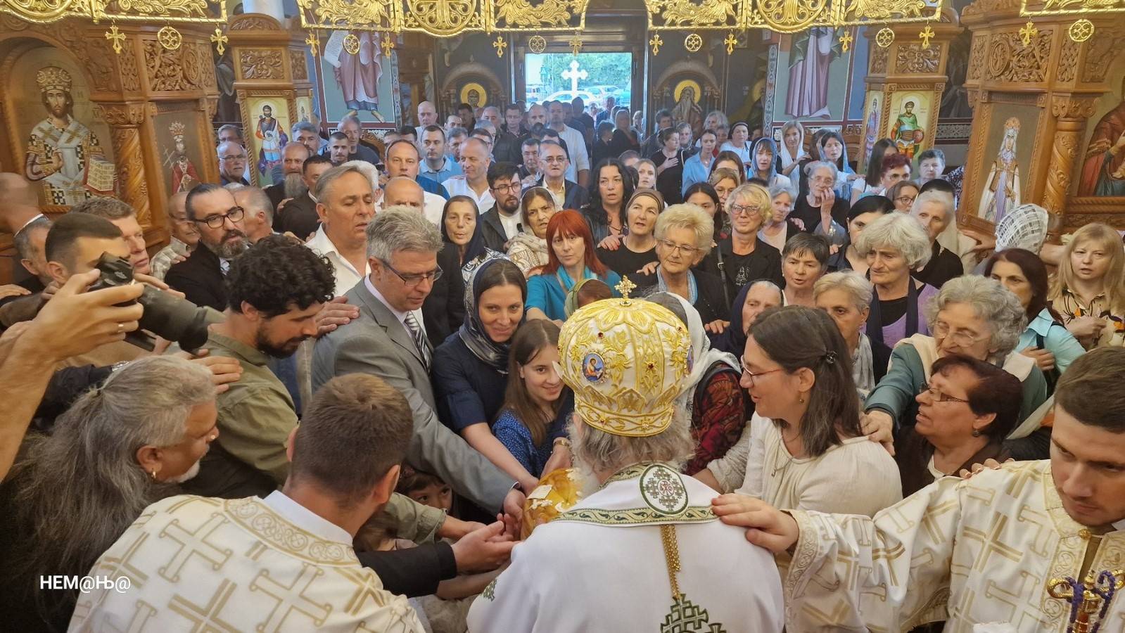 Након Свете тајне Причешћа, Преосвећени Господин Епископ је пререзао славски колач са кумовима храма, породицом Марковић.  По завршеној Светој Литургији, уприличена је и трпеза љубави за све окупљене у храму.
