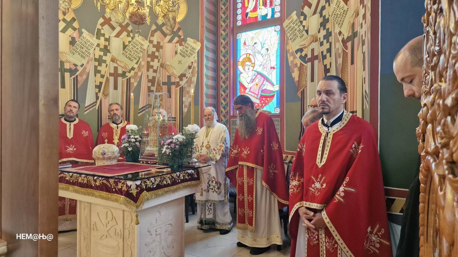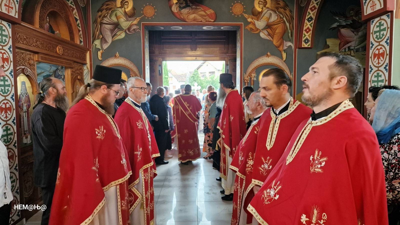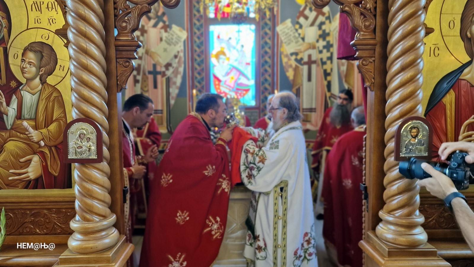 У само навечерје храмовне славе, празнично бденије служио је архимандрит Стефан, настојатељ манастира Велика Ремета, уз саслужење јеромонаха Димитрија, сабрата манастира Шишатовац и епархијског протођакона Горана Власца.