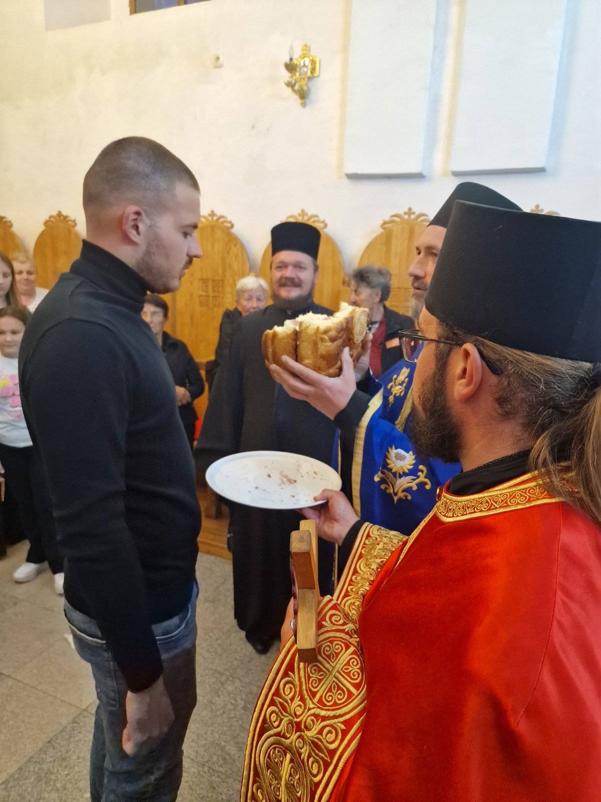 По завршеном благосиљању славских дарова сви присутни су пошли у салу парохијског дома, где је била спремљена богата аврамовска трпеза љубави за све домаће и добродошле госте. Током вечере, бираним речима присутнима се обратила Вања Петковић, секретар Светосавске омладинске заједнице, изразивши благодарност, понајпре, Његовом Високопреосвештенству Архиепископу сирмијском и Митрополиту сремском Господину Василију, за сву љубав и разумевање коју показује, затим локалној самоуправи на несебичној помоћи коју пружа, Колу српских сестара, свим присутним добротворима, дародавцима и свим доброжелатељима Светосавске омладинске заједнице.