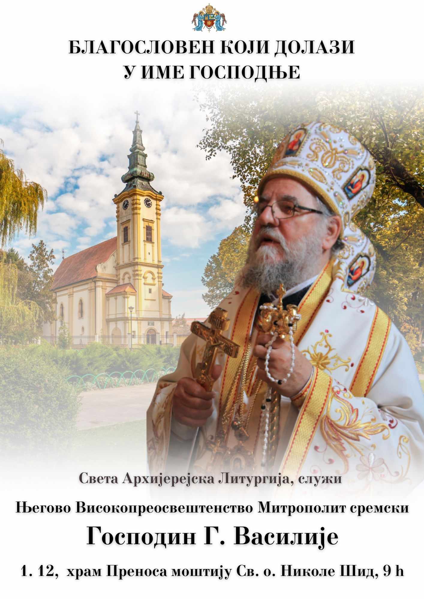 Свештенство Саборног храма Преноса моштију Светог оца Николаја у Шиду, позива верни народ на молитвено сабрање прве недеље Божићног поста, на Свету архијерејску Литургију, 1. децембра, са почетком у 9 часова.