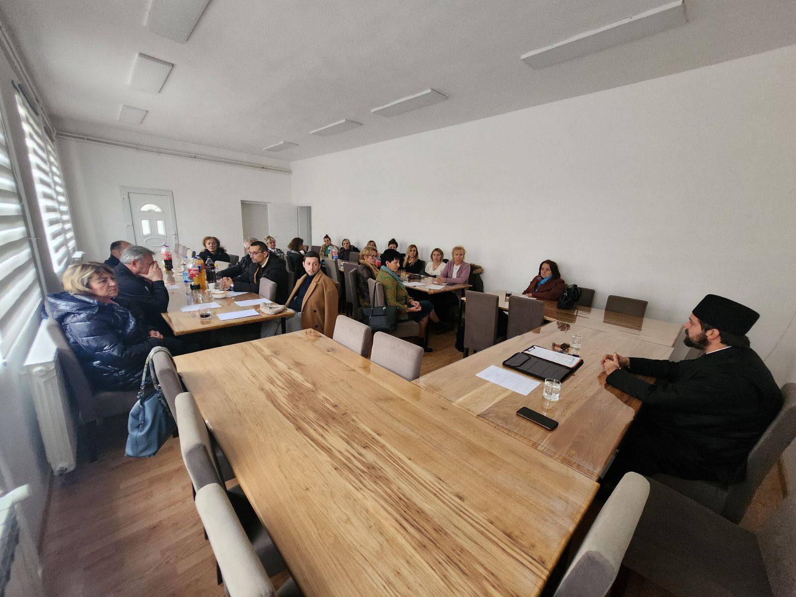 У оквиру семинара ,,Унапређење менталног здравља запослених“, у ОШ „Филип Вишњић“ у Моровићу запосленима ове образовне установе одржано је предавање на задату тему Министарства просвете, ,,О смислу и духовним вредностима“. Српски дом, као заједничка кућа црквеног и просветног беседништва, био је место сабрања овога скупа. Залагањем и трудом вероучитеља, господина Милорада Марковића, дошло је до координације парохије моровићке при храму Рођења Пресвете Богородице и ОШ „Филип Вишњић“ и свих њених подручних јединица, укључујући школе у Вишњићеву и Јамени, на вишем и заиста завидном нивоу. Парох моровићки, јереј Стефан Сремац, одазвао се позиву уважене директорице ове просветне институције, госпође Владице Стојаковић и одржао двочас, остављајући време за мноштво питања публике.