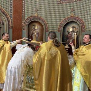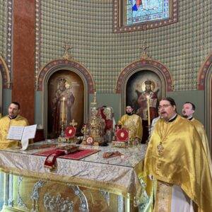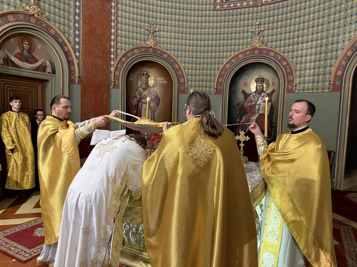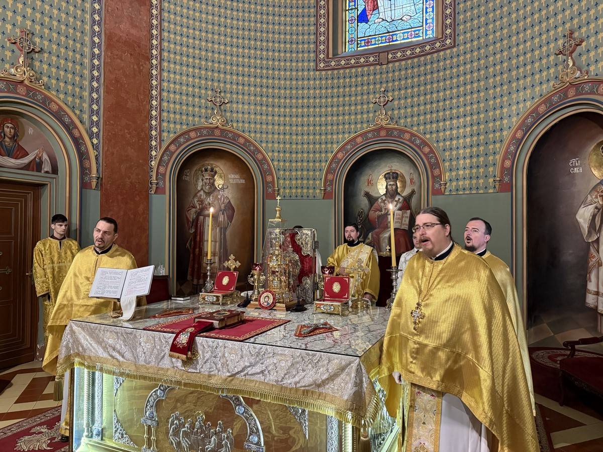На дан празника служена је Света архијерејска Литургија. Евхаристијским сабрањем началствовао је Његово Високопреосвештенство Митрополит сремски Господин Василије, уз саслужење карловачког свештенства и ђаконства.