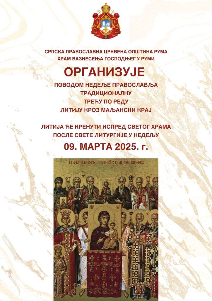 Литија кроз маљански крај у организацији ЦО Рума, при храму Вазнесења Господњег у Руми.