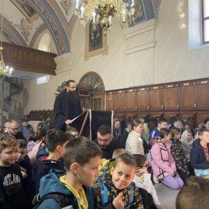 Током Свете Литургије исповедили су се и причестили свештеници и вероучитељи подручног намесништва сремскомитровачког, као и ђаци ОШ „Бранко Радичевић”. По благослову исповедник је био протојереј-ставрофор Милован Пузовић, пензионисани свештеник из Добринаца.