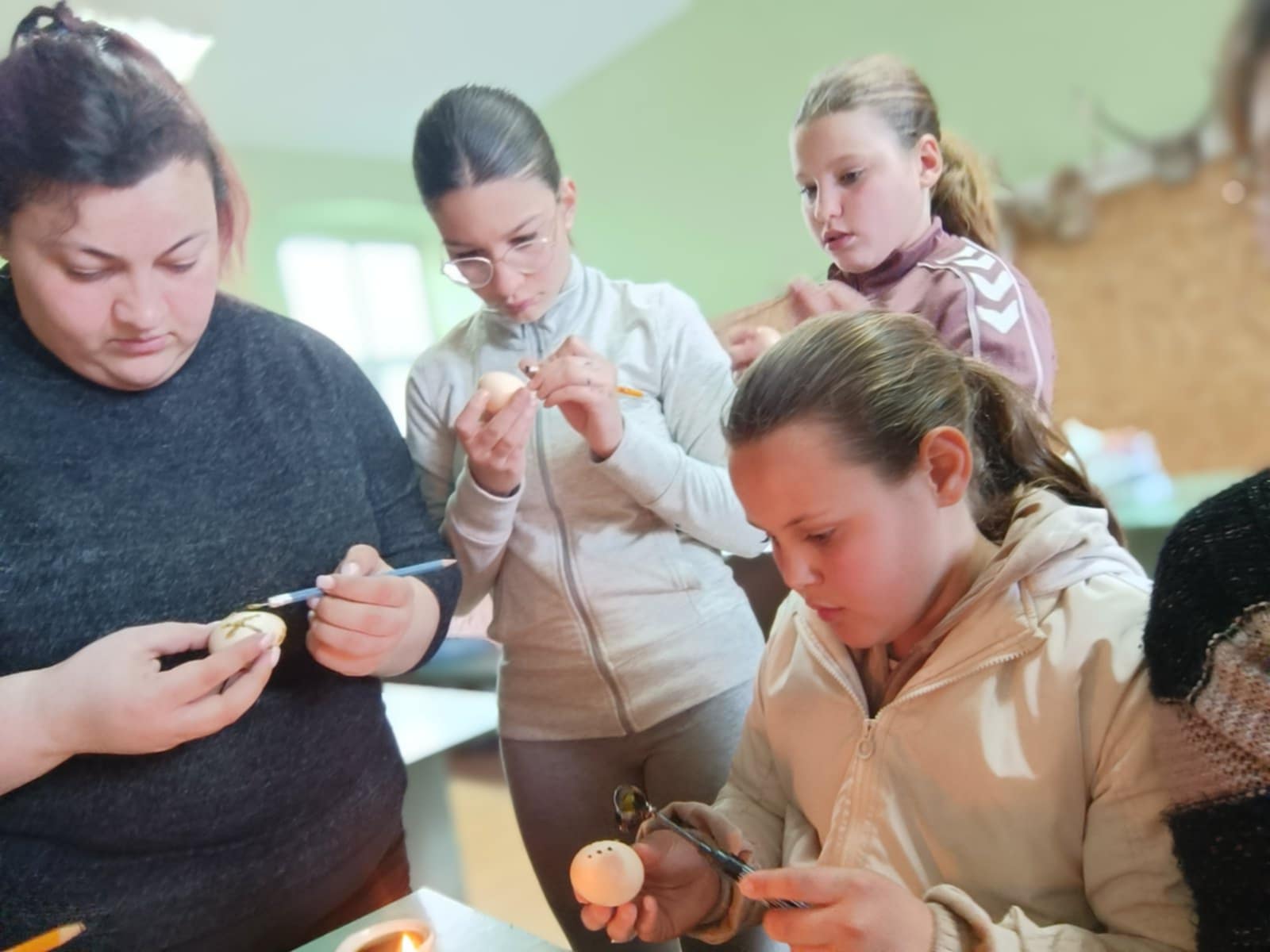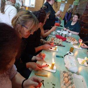 Чланице Кола српских сестара из Прхова и Сремских Михаљеваца састале су се у недељу 6. априла у просторијама Ловачког дома у Прхову како би шарале јаја традиционалном техником – воском, заједно са Миром Видаков, чланицом Кола из Пећинаца, која је своје знање несебично поделила са осталим чланицама.