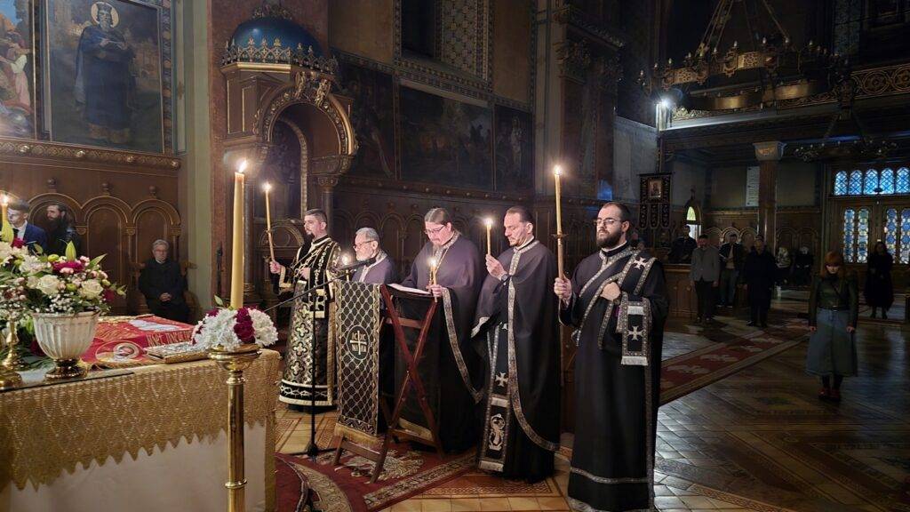 ВЕЛИКИ ПЕТАК, ВЕЛИКА СУБОТА И ПРАЗНИК ВАСКРСЕЊА ХРИСТОВОГ У СРЕМСКИМ КАРЛОВЦИМА На Велики петак, 18. априла 2025. године, у Саборном храму Светог оца Николаја у Сремским Карловцима служена је свечана вечерња служба са изношењем плаштанице. Уз саслужење карловачког катедралног клира, Његово Високопреосвештенство Митрополит сремски Господин Василије началствовао је богослужењем које симболише погреб Господњи и предводио је део вечерње службе на ком се плаштаница полаже на Христов гроб. Такође, у вечерњим часовима служено је мало повечерје са каноном Распетом Христу (Плач Мајке Божје), а потом и јутрење Велике суботе са статијама. На празник Васкрсења Господа Исуса Христа, 20. априла 2023. године, Високопреосвећени Митрополит сремски Гoсподин Василије служио је Свету архијерејску Литургију у Саборном храму Светог оца Николаја у Сремским Карловцима. Саслуживало му је сремскокарловачко свештенство, а током евхаристијског славља, настојатељ храма је прочитао Васкршњу посланицу коју су својој духовној деци упутили Његова Светост Патријарх српски Господин Порфирије и Високопреосвећена и Преосвећена Господа Архијереји Српске Православне Цркве. По окончању свечаног богослужења, Његово Високопреосвештенство је верном народу, који се у великом броју окупио у Катедралном храму, срдачно честитао велики празник наше Свете Цркве, а потом је за свештенике из Сремских Карловаца приређено послужење у трпезарији његове резиденције.