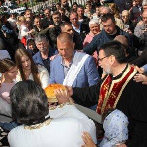 Радост овог дана наставила се у Светосавском дому уз трпезу љубави, коју је породица Теодосић са великом пажњом припремила за све вернике који су се тог дана нашли у порти храма Светих Кирила и Методија.
