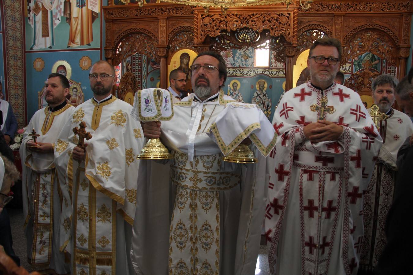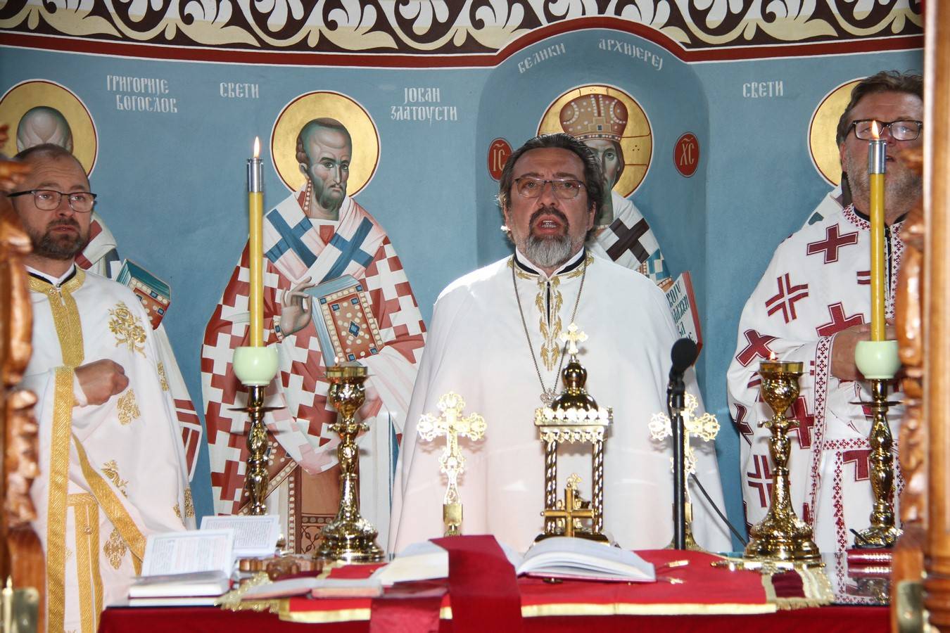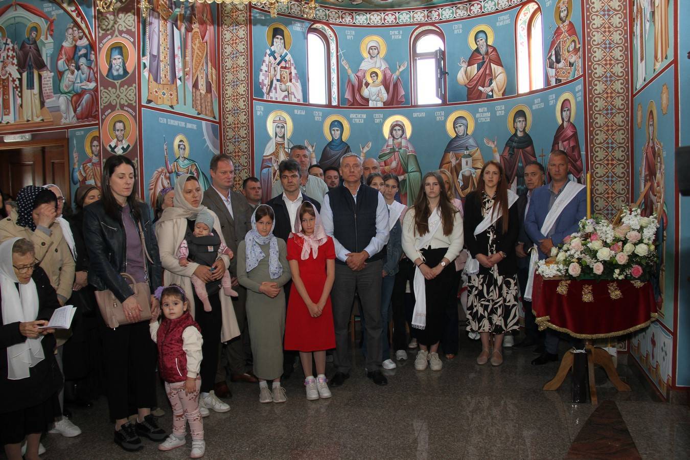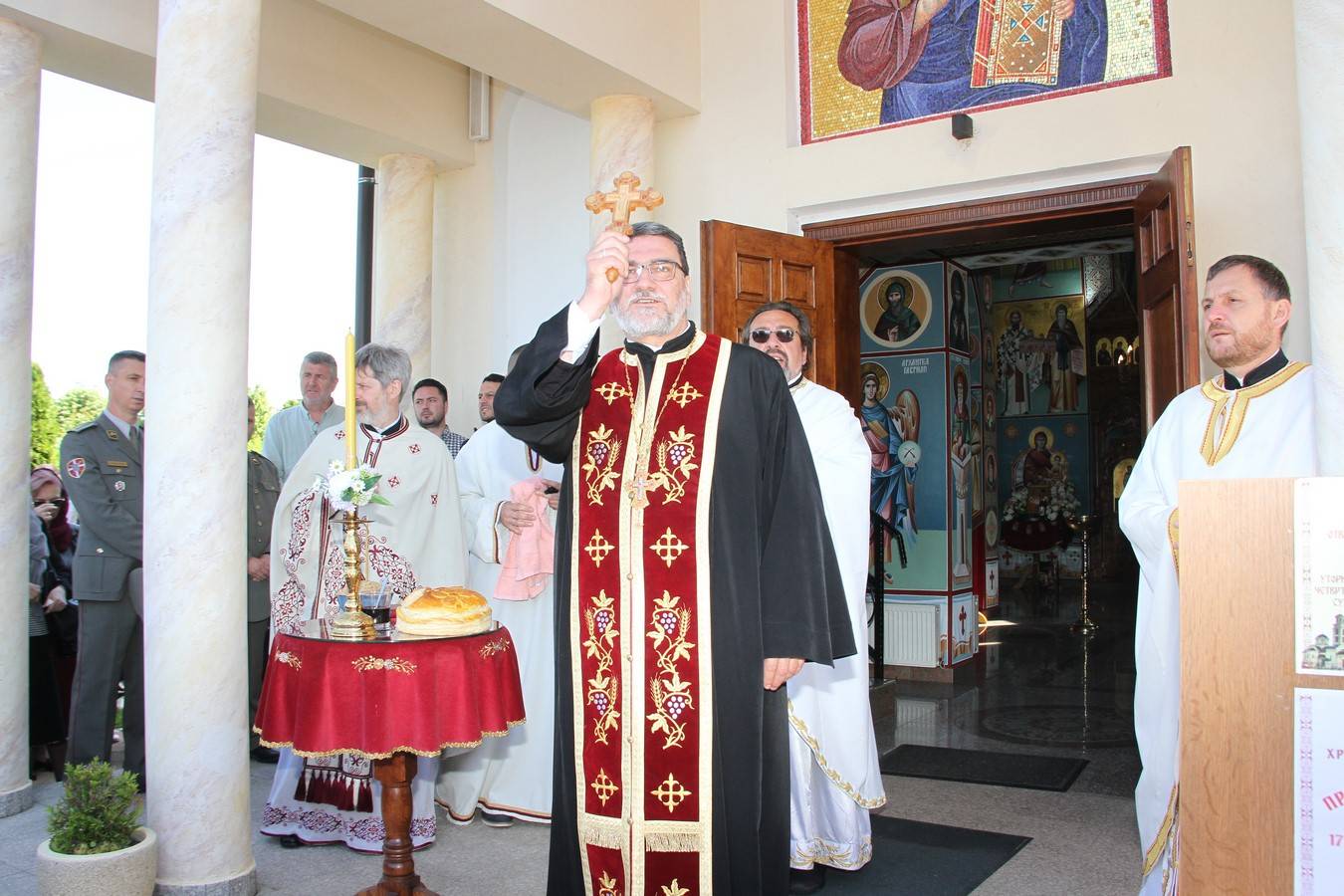 После Свете Литургије, на којој се причестио велики број верника, од којих највише деце, учињен је трократни опход око храма. Литију су предводили кумови славе Владимир и Љубица Теодосић са децом. После приношења славских дарова протојереј-ставрофор Саво Ракита одржао је поучно слово о празнику и заштитницима овог храма и срдачно се захвалио садашњим, али и свим претходним породицама који су били кумови овом храму на данашњи дан. Поред тога захвалио се свим пријатељима, који су својим великодушним учешћем допринели да се храм сагради.