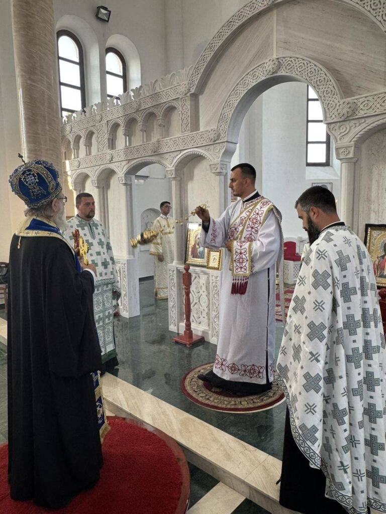 ПОДЕЛА АНТИМИНСА У АРХИЈЕРЕЈСКОМ НАМЕСНИШТВУ ШИДСКОМ У четвртак по Светој Педесетници, 12. јуна 2025. лета Господњег, а у навечерје празника Светог апостола Јерме и Светог мученика Ермија, у храму Светог великомученика кнеза Лазара у Шиду служено је вечерње богослужење. Вечерњу службу предводио је Његово Високопреосвештенство Архиепископ сирмијски и Митрополит сремски Г. Василије, док су нашем архијереју саслуживали свештеници Архијерејског намесништва шидског, протојереј Бојан Цветковић, парох беркасовачки, јереј Мирослав Торбица, парох јаменачки и шидски ђакон Александар Јефтенић. Уз бројни верни народ, који је готово у потпуности испунио свети храм, на богослужењу су присуствовали и представници Општине Шид, на челу са председником Општине, господином Зораном Семеновићем. Високопреосвећени Митрополит је на крају вечерње службе изнео пригодну беседу, поучивши верни народ о значају празника Силаска Светог Духа на апостоле, у чијем се попразништву налазимо, а потом је појаснио и богослужбени значај антиминса, без кога савршавање Свете Литургије ни у ком случају није могуће. Након богослужења, у свечаној сали храма Светог великомученика кнеза Лазара приређена је трпеза љубави, трудом старешине храма, протојереја-ставрофора Ђорђа З. Марића и чланова Црквеног одбора. Непосредно пре свечане трпезе подељени су нови антиминси свим Црквеним oпштинама Архијерејског намесништва шидског, са потписом нашег Митрополита, којим се сведочи нераскидиво јединство сваког свештеника са својим надлежним архијерејем. По благослову нашег Митрополита, током послужења беседио је старешина храма, протојереј Ђорђе, који се захвалио нашем Архипастиру на показаној љубави, пожелевши му да још много лета, као и до сада мудро управља лађом Богом спасаване наше Епархије сремске. Текст: вероучитељ Ненад Србљанин Фотографије: управа храма Светог великомученика кнеза Лазара у Шиду