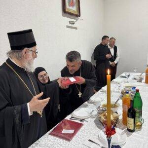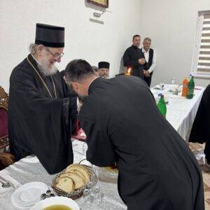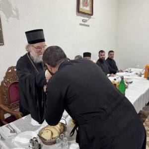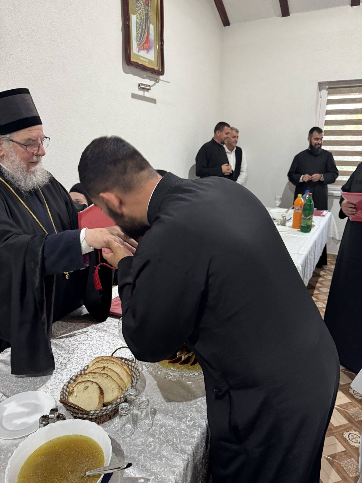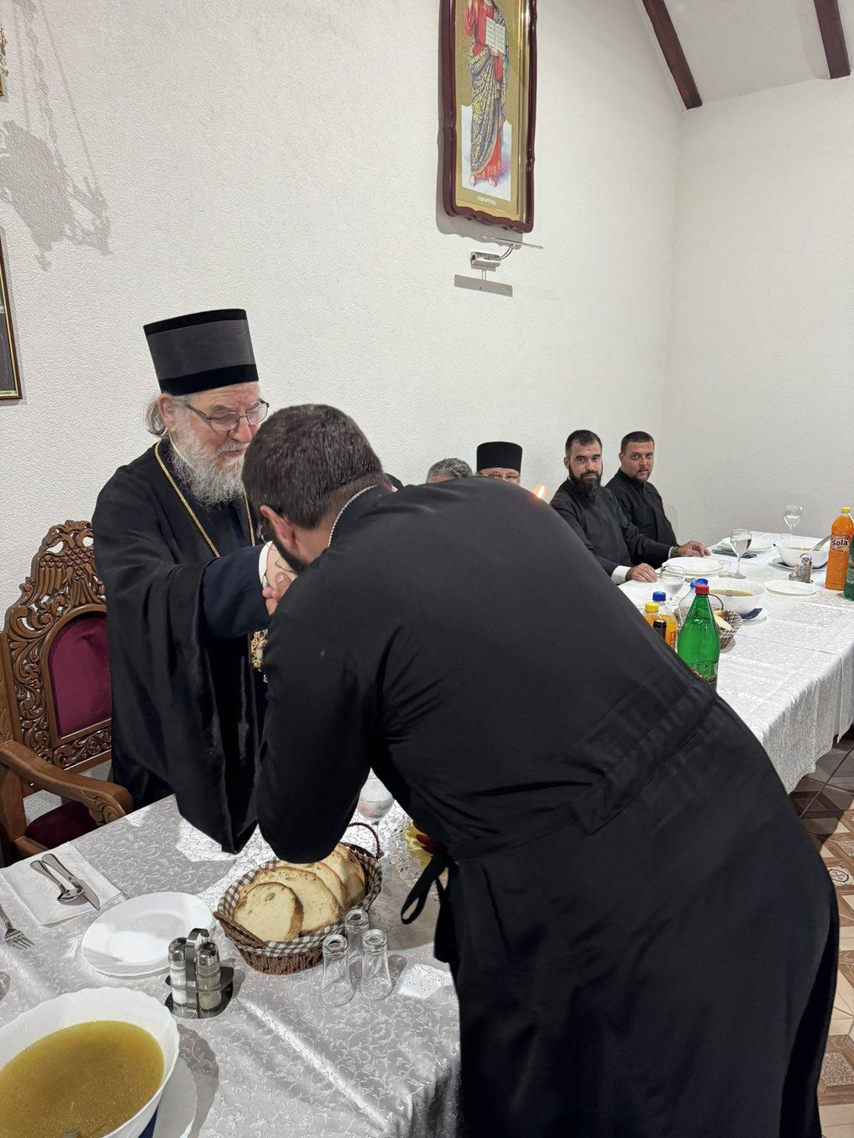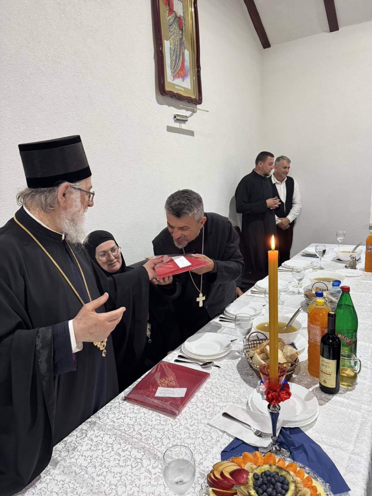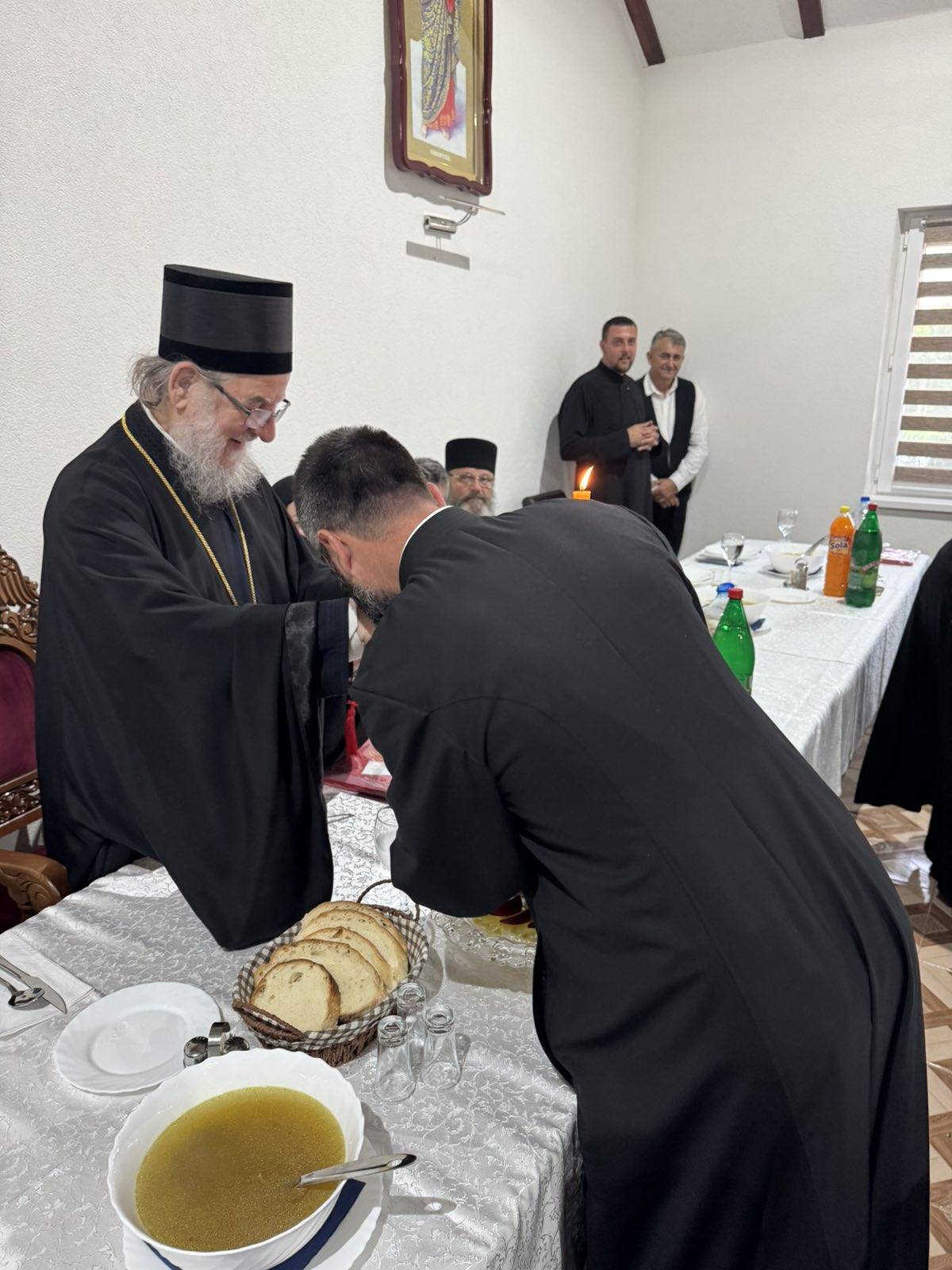 Након богослужења, у свечаној сали храма Светог великомученика кнеза Лазара приређена је трпеза љубави, трудом старешине храма, протојереја-ставрофора Ђорђа З. Марића и чланова Црквеног одбора. Непосредно пре свечане трпезе подељени су нови антиминси свим Црквеним oпштинама Архијерејског намесништва шидског, са потписом нашег Митрополита, којим се сведочи нераскидиво јединство сваког свештеника са својим надлежним архијерејем.