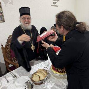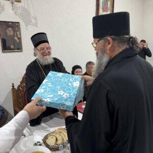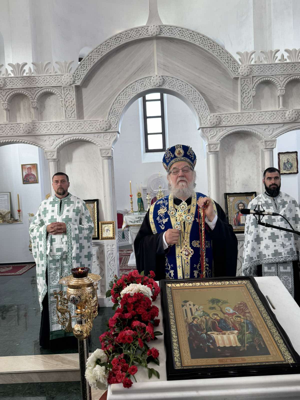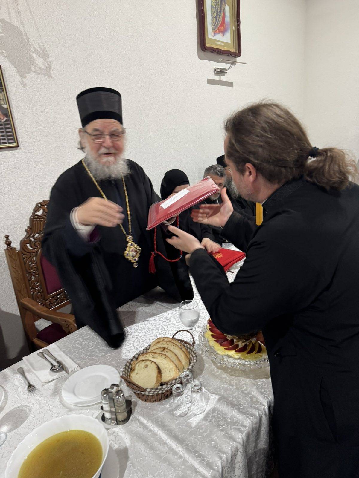 По благослову нашег Митрополита, током послужења беседио је старешина храма, протојереј Ђорђе, који се захвалио нашем Архипастиру на показаној љубави, пожелевши му да још много лета, као и до сада мудро управља лађом Богом спасаване наше Епархије сремске.