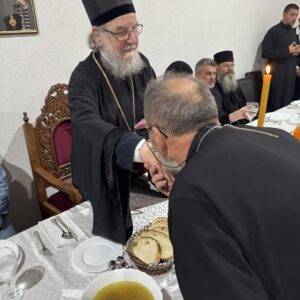 Вечерњу службу предводио је Његово Високопреосвештенство Архиепископ сирмијски и Митрополит сремски Г. Василије, док су нашем архијереју саслуживали свештеници Архијерејског намесништва шидског, протојереј Бојан Цветковић, парох беркасовачки, јереј Мирослав Торбица, парох јаменачки и шидски ђакон Александар Јефтенић.