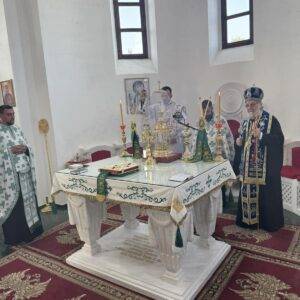 Високопреосвећени Митрополит је на крају вечерње службе изнео пригодну беседу, поучивши верни народ о значају празника Силаска Светог Духа на апостоле, у чијем се попразништву налазимо, а потом је појаснио и богослужбени значај антиминса, без кога савршавање Свете Литургије ни у ком случају није могуће.