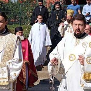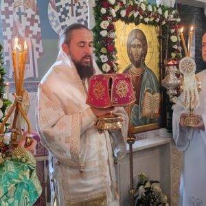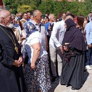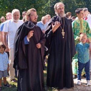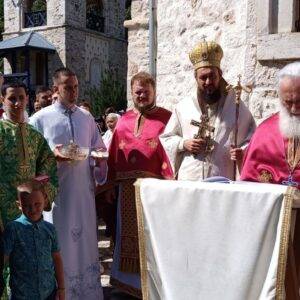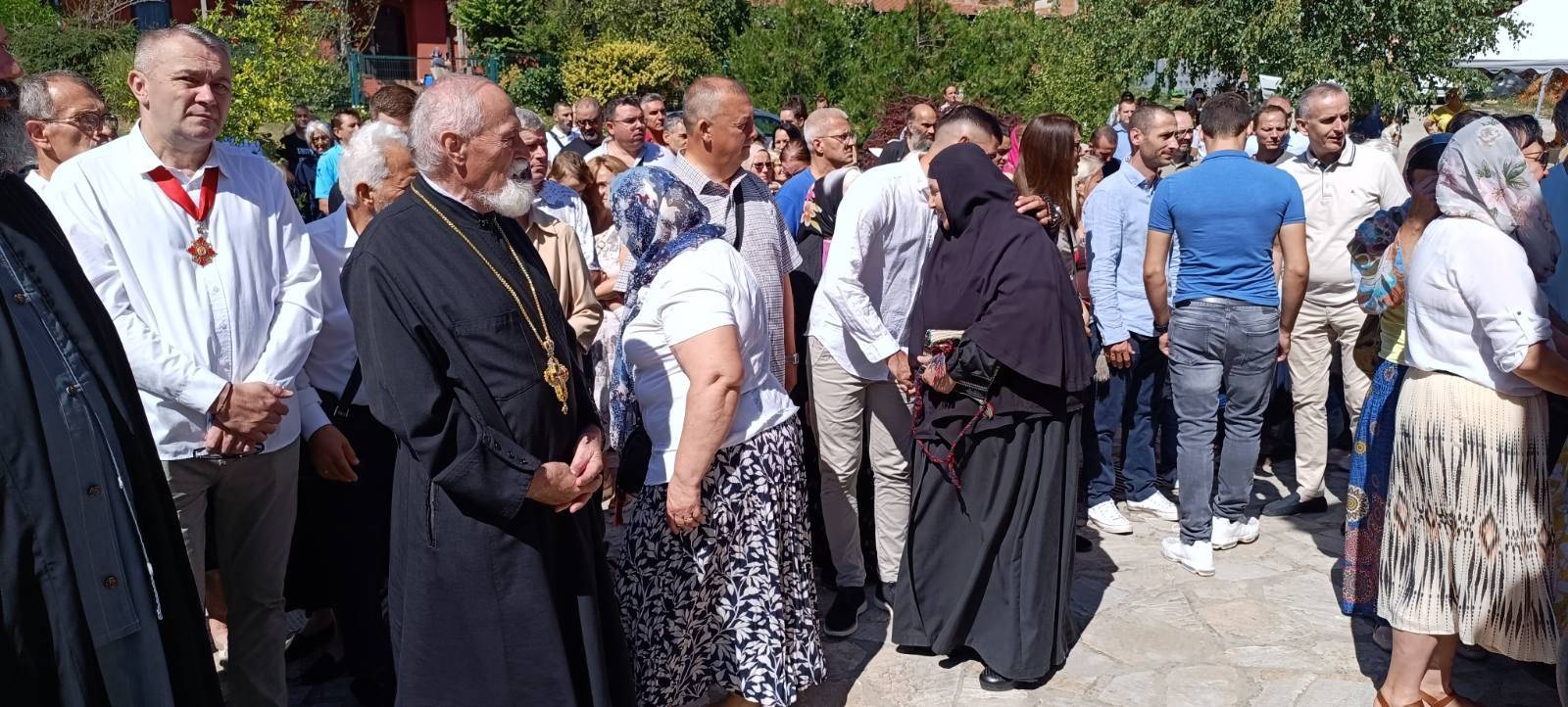 Након Свете Литургије, извршен је опход око светог храма, а потом су освећени славски дарови. Трудом архимандрита Атанасија, јеромонаха Софронија и кумова манастирске славе, велико мноштво сабраног народа Божијег угошћено је за свечарском трпезом љубави.