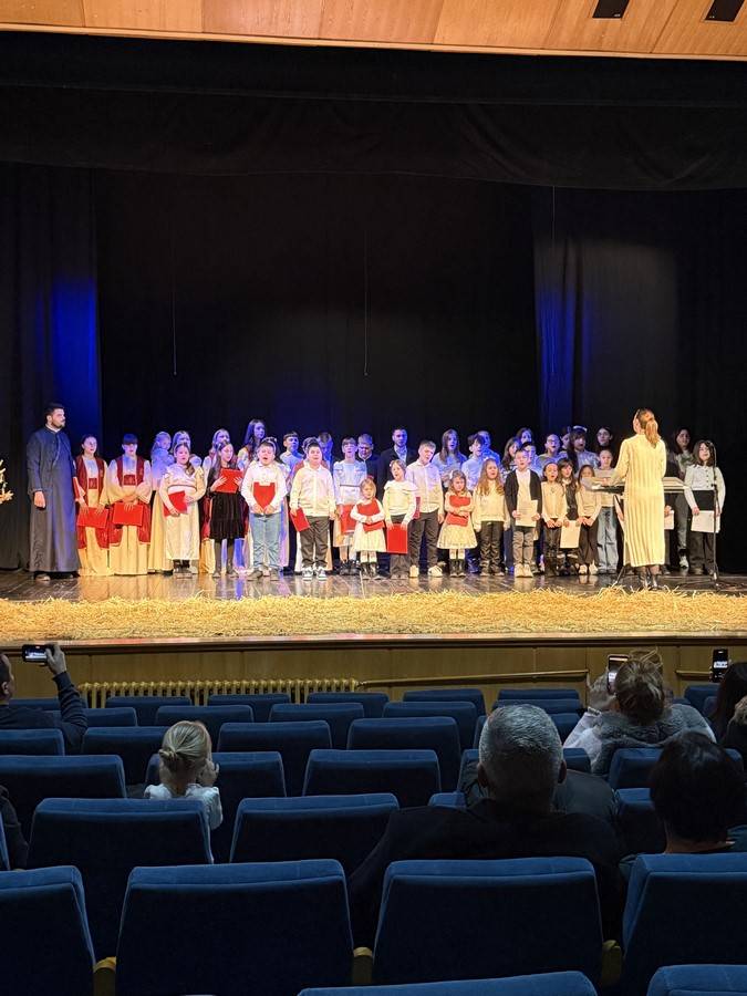 Божићни концерт „Анђели певају” Божићни концерт „Анђели певају” одржан је на празник Обрезања Господњег, Светог Василија Великог и на православну Нову годину у Културном центру Општине Беочин. Догађај је протекао у свечаној атмосфери, уз наступ хорова „Свети Василије Острошки” из Беочина под руководством диригенткиње Евгеније Којић и „Благовеститељ” из Сусека под руководством диригента свештеника Николе Ерцега, који су својим извођењем допринели духу празника и заједништва. На самом почетку концерта присутнима се обратио свештеник Никола Ерцег речима пожелевши свима да празник Рођења Богомладенца Исуса Христа, унесе мир у све куће и топлину Божије љубави у њихова срца. Посебну захвалност упутио је директорици Културног центра Општине Беочин госпођи Тањи Дрљачи на позиву и лепом гостопримству, као и деци која су на прави начин увеличала најрадоснији хришћански празник. Програм је окупио бројну публику и потврдио значај музике која спаја људе, ствара мир и успоставља културни дијалог. Текст: Свештеник Никола Ерцег Фотографије: Драгана Шијачки; Јасна Јандрић; Јелена Чоловић