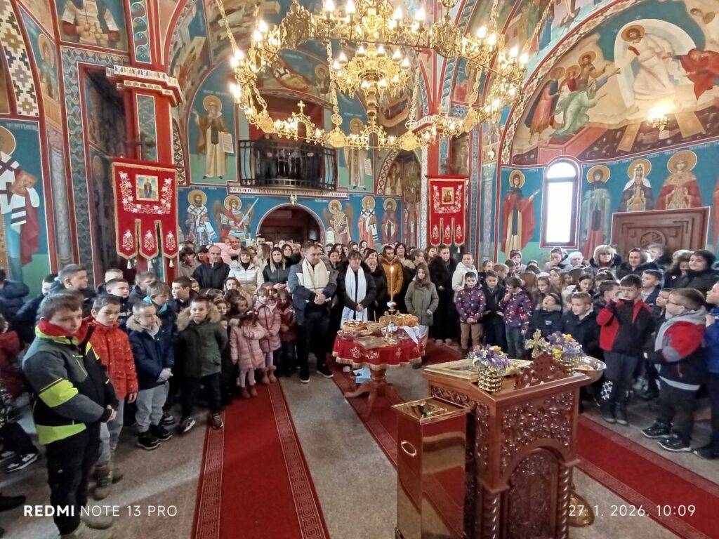САВИНДАН У КУКУЈЕВЦИМА Празник Светог Саве, првог српског архиепископа, прослављен је торжествено у кукујевачкој парохији, како и доликује овом свенародном и свенационалном празнику. Прослава је почела Светом Литургијом, којом је началствовао надлежни парох, протојереј-ставрофор Душан Чавка. За благољепије појања били су задужени ученици издвојеног одељења Основне школе ,,Бранко Радичевић“ у Кукујевцима, као и жене парохијанке, које редовно одговарају на Светој Литургији. Након заамвоне молитве, извршено је освештање славских дарова које су ове године принели кумови славе, Ненад и Александра Фајфрић из Кукујеваца, који су дали и прилог свом храму, док су у име школе дарове принеле учитељице Драгана Јагодић и Зора Степановић. По завршетку Свете Литургије, деца предшколског и школског узраста до петог разреда декламовала су стихове посвећене Светом Сави, након чега су награђена традиционалним светосавским пакетићима. Испред парохије прота Душан је уручио пригодне поклоне и захвалнице кумовима славе, дечацима који помажу у олтару и женама које су појале на Светој Литургији. После завршеног рецитала, испред Светог храма приређено је послужење за сву децу која су присуствовала богослужењу. Текст и фотографије: управа парохије у Кукујевцима