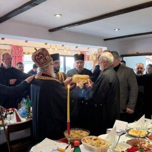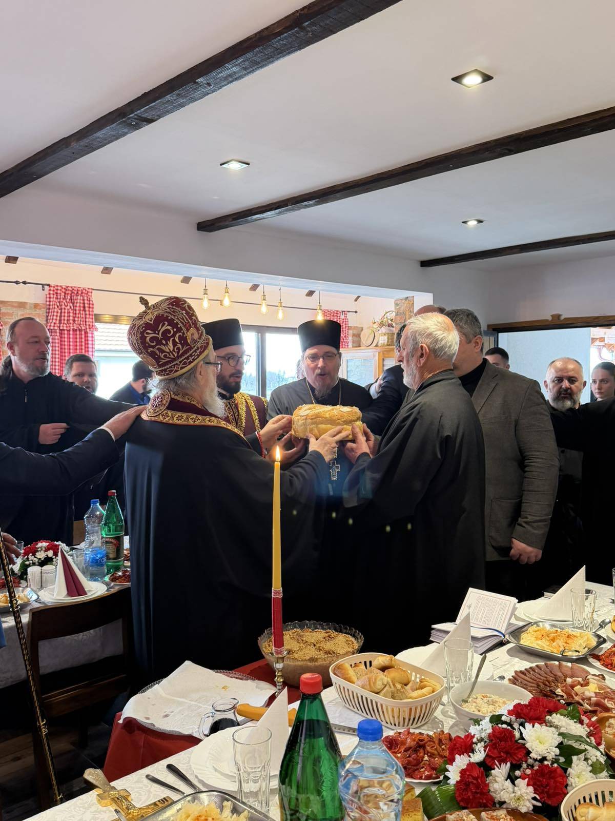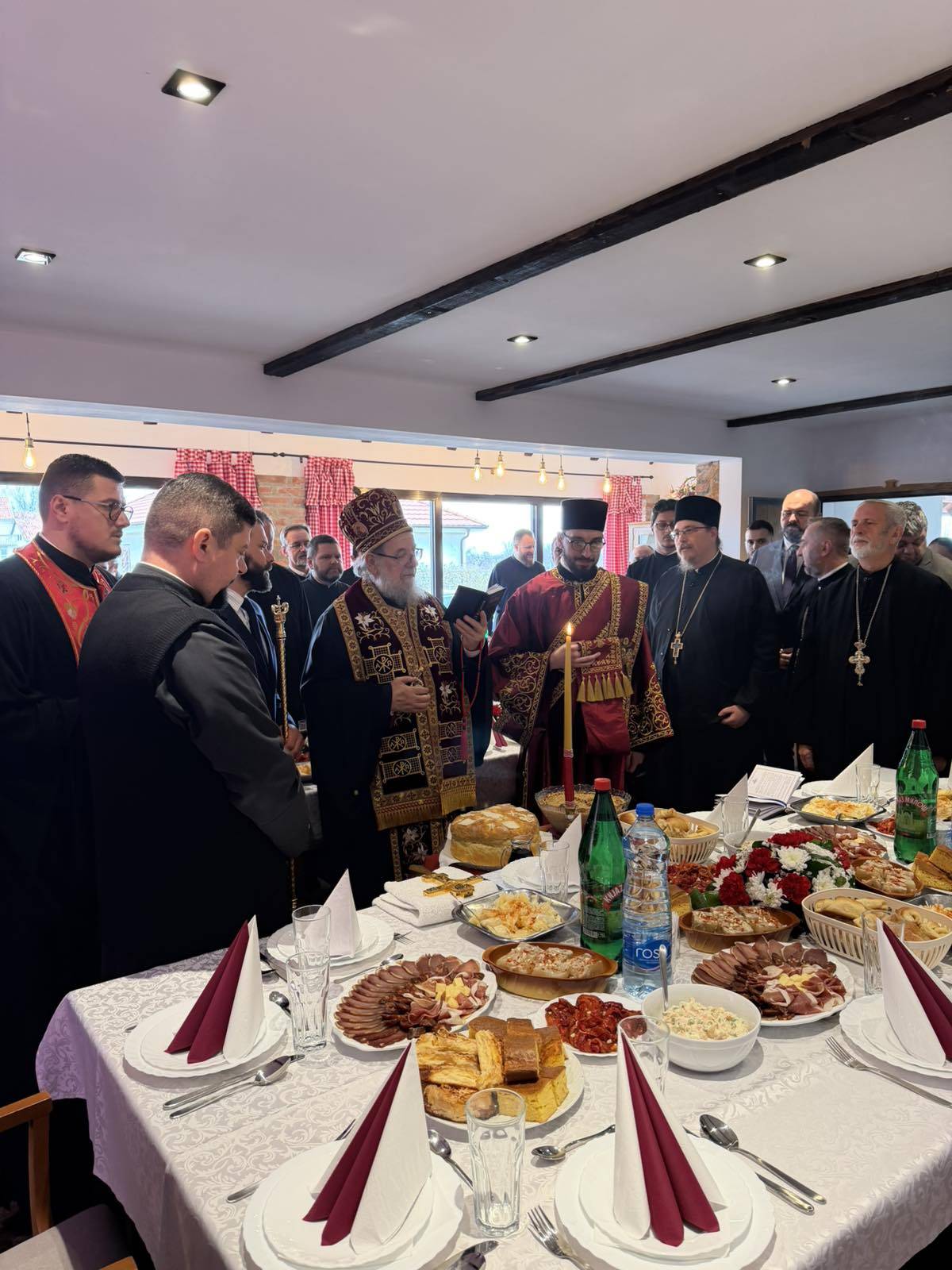 Након тога у оближњем селу, у домаћинству Божић, Митрополит је благословио славске дарове свештеничком братству архијерејског намесништва сремскокарловачког који Светог Максима обележава као свог заштитника. Свети Максим је у тешка и небивала времена носиo бреме тешке архијерејске службе на просторима Угарске која је тада била посебно у деловима Срема насељена српским православним живљем. Поред велике жртве коју је пријавио код измирења православних Влаха, он је сав свој живот посветио изграђивању манастира Крушедола и српског народа у Срему, а и све до Београда. Његово старање је диван пример истинског служења Богу и роду – управо онако како се то очекује и од свештенослужитеља.