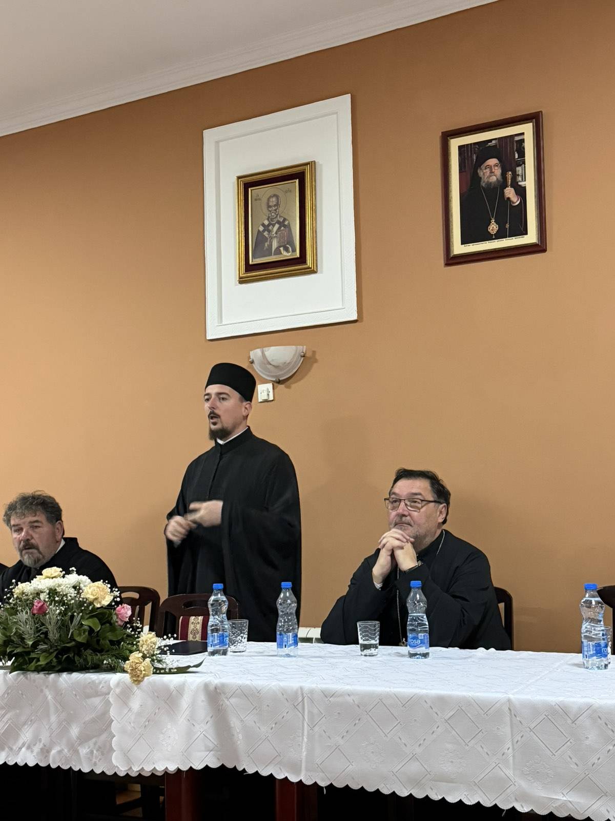 Обележавање празника настављено је у сали парохијског дома предавањем које је одржао отац Станко под називом ,,Православље, Литургија и живот“, у којем је говорио о значају који Света Литургија има за нас хришћане, да је она „алфа и омега“, почетак и крајњи циљ нашег живота у Христу Господу.