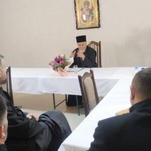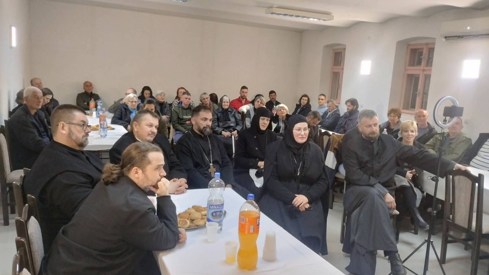 На самом крају предавања, верни народ Божји заједно са својим свештеницима, запојао је добро познате стихове химне богомољачког покрета, молећи Господа да непоколебиво ходи утабаним стазама наших светих предака.