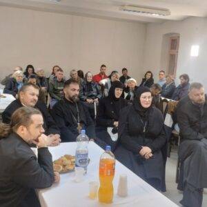 У навечерје друге седмице Часног поста, верни народ Шида имао је благослов да присуствује предавању високопречасног протојереја-ставрофора оца Бранка Ћурчина. Предавање на тему „Пост, молитва и богомољачки покрет владике Николаја“, одржано је по благослову Mитрополита сремског Господина Василија, а трудом и љубављу високопречасног протојереја Милана Пршића, у гостопримници цркве Преноса моштију Светог оца Николаја. Говорећи о значају богомољачког покрета за очување православне вере код српског народа, прота Бранко је окупљени народ Божји најпре упознао са историјским чињеницама које се везују за само порекло богомољачког покрета. Иако формално основан крајем друге деценије 20. века, богомољачки покрет своје зачетке има већ средином 19. столећа, када се и формирају прве заједнице побожних хришћана с намером да  изучавају Божанску реч Светога писма. Ове заједнице најпре су се формирале на тлу Војводине, да би се доцније прошириле и на многе друге крајеве српских земаља. Премда је намера ових заједница била благочестива, временом се појавила бојазан од стварања секташког начина поимања хришћанства и од отпадања од званичне заједнице Цркве, окупљене око тела и крви Спаситеља Христа. Из тог разлога, Црква је настојала да богомољачки покрет дела само под надзором парохијских свештеника и надлежних епископа, на чијем тлу су богомољачки покрети настајали. Највећи допринос на пољу оцрковљења богомољачког покрета дао је Свети владика Николај Велимировић, чији је ауторитет у многоме допринео очувању православног и црквеног духа унутар богомољачког покрета. Залагањем светога владике, богомољачки покрет је уоквирен и формално, кроз статут чија су правила сви чланови били дужни да поштују. Зарад промовисања црквеног духа под окриљем богомољачког покрета, залагањем владике Николаја сазивани су такозвани црквено-народни сабори, који су чували јединство Свете  Цркве. Правила статута, како је отац Бранко нагласио, најбоље је дочаравала дивна песма „Помози нам вишњи Боже…“ која је сматрана својеврсном химном богомољачког покрета. Дакле, од верника при богомољачком покрету очекивала се пуноћа живљења у Господу Христу, полажући сваку наду и уздање у Божију милост и помоћ. Такође, својеврсна жила куцавица богомољачког покрета било је и ревновање у Христу, где се од сваког верника очекивао подвиг поста и молитве, који би био један мали принос Богу од стране човека. У ту сврху, високопречасни предавач је нагласио значај и улогу коју пост и молитва имају у сваком периоду живота Цркве, јер су били насушна потреба хришћана у свим епохама. Сходно томе, и од нас верника 21. столећа очекује се да следујемо нашим светим прецима и да исказујемо љубав према Богу, вршећи благочестиво дело поста и молитве. Неопходно је разумети смисао труда и подвига чланова богомољачког покрета и њихов живот схватити као свети пример. Дочим, требали бисмо се чувати да њихов начин живљења и исповедања вере омаловажавамо и доживљавамо их људима зилотског и фанатичног настројења. Према речима оца Бранка, богомољачки покрет је доста дуго времена био од велике важности за живот Цркве, будући да је активно доприносио заједници, а многе породице које су биле његови чланови, изнедриле су велики број свештеника и монаха. Сходно томе, сваки верник требао би следовати њих