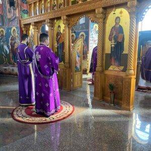 У храму Светих сирмијских мученика у Сремској Митровици Његово Високопреосвештенство Митрополит сремски Василије служио је Свету архијерејску литургију пређеосвећених дарова током које је обављена исповест свештенства Архијерејског намесништва сремскомитровачког. Митрополиту су у олтару саслуживали протонамесници Андрија Авакумовић и Радослав Радовановић, ђакон Александар Цигановић и епархијски протођакон Горан Власац. Исповедник је био архимандрит Јустин (Стојановић) игуман манастира Беочин. Након исповести, којој је сваке године домаћин други храм на подручју намесништва, целукопуно активно и пензионисано свештенство и монаштво  околних манастира причестило се светим даровима. Причешћу су приступили сви вероучитељи и ученици веронауке. Добри домаћини молитвеног саборовања сремског Архијереја и свештенства били су јереји храма у митровачкој „Малој Босни” Далибор и Бранимир Чолић са архијерејским намесником протојерејем–ставрофором Савом Ракитом. После Свете Литургије, исповести и причешћа, Митрополит Василије обишао је радове на изградњи храма Свете Петке у Казнено-поправном заводу у Сремској Митровици. Тамо се у присуству управника Драгана Рацковића уверио да осликавање и обнова храма протичу у најбољем реду.