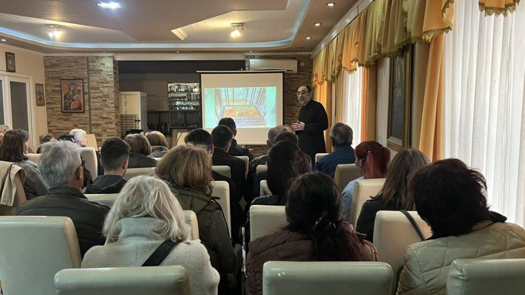 Предавање протонамесника Радослава Радовановића у Сремској Митровици У трећој недељи Великог поста – Крстопоклоној, када Господ позива „Ко хоће за мном да иде нека се одрекне себе и узме крст свој и за мном иде”, протонамесник Радослав Радовановић одржао је Свету Литургију у сремскомитровачком Саборном храму Светог великомученика Димитрија и богонадахнуту беседу којом је верни народ подсетио на спасоносну улогу Часног крста и жртве Господње у пружању охрабрења и утехе човеку у свакодневним невољама и болестима које га сналазе. Недељна празнична беседа настављена је на духовном предавању у сали парохијског Српског дома где је прота Радослав истакао да подвиг у духовном животу (пост, молитва, трпљење и борба са страстима) није сам себи циљ, већ средство за духовно преображење. Како учи Свети Серафим Саровски, крајњи циљ је стицање благодати Духа Светога, док Старац Пајсије Светогорац наглашава да човек приноси мали труд, а Бог дарује велику благодат. Подвиг тако постаје припрема душе да прими Божје присуство. У православној духовности важна је синергија — сарадња Бога и човека. Човек доноси добру вољу, труд и покајање, а Бог узвраћа силом, благодаћу и духовном утехом. Без личног труда нема духовног напретка, али без Божје благодати човек не може достићи пуноћу живота у Христу. Крст се представља као пут ка радости. Он се у животу јавља кроз болести, неправде, тешке односе и унутрашње борбе. Међутим, када се носи са вером и поверењем у Бога, крст постаје извор духовне снаге, мира и истинске радости. Посебно се наглашава смирење као темељ духовног живота. Гордост удаљава човека од Бога, док смирење отвара срце за деловање благодати. Зато Бог понекад допушта искушења како би човек научио дубље поверење и преданост. Као плод благодати јавља се унутрашњи мир, који није само психолошко стање, већ духовна стварност. Човек који се узда у Бога може осећати мир и у најтежим околностима, а тај мир постаје сведочанство живог присуства Духа Светога, рекао је отац Раде.