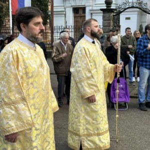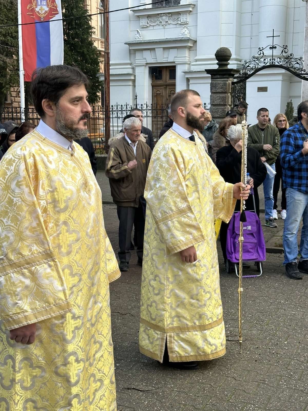 Традиција на Богојављење је богата, па је тако након литургије и беседе, свештенство у литији